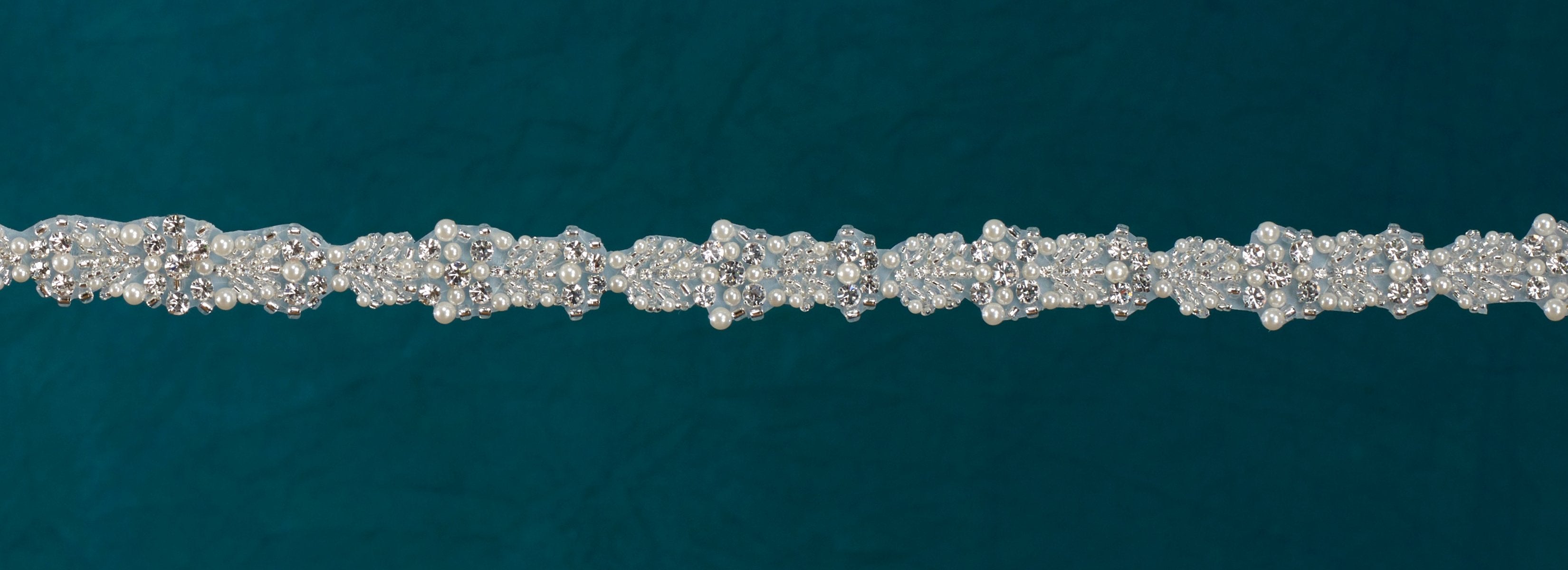 Rhinestone belt 28ā€ long with satin ribbon ties. Ribbon ties available in white or ivory