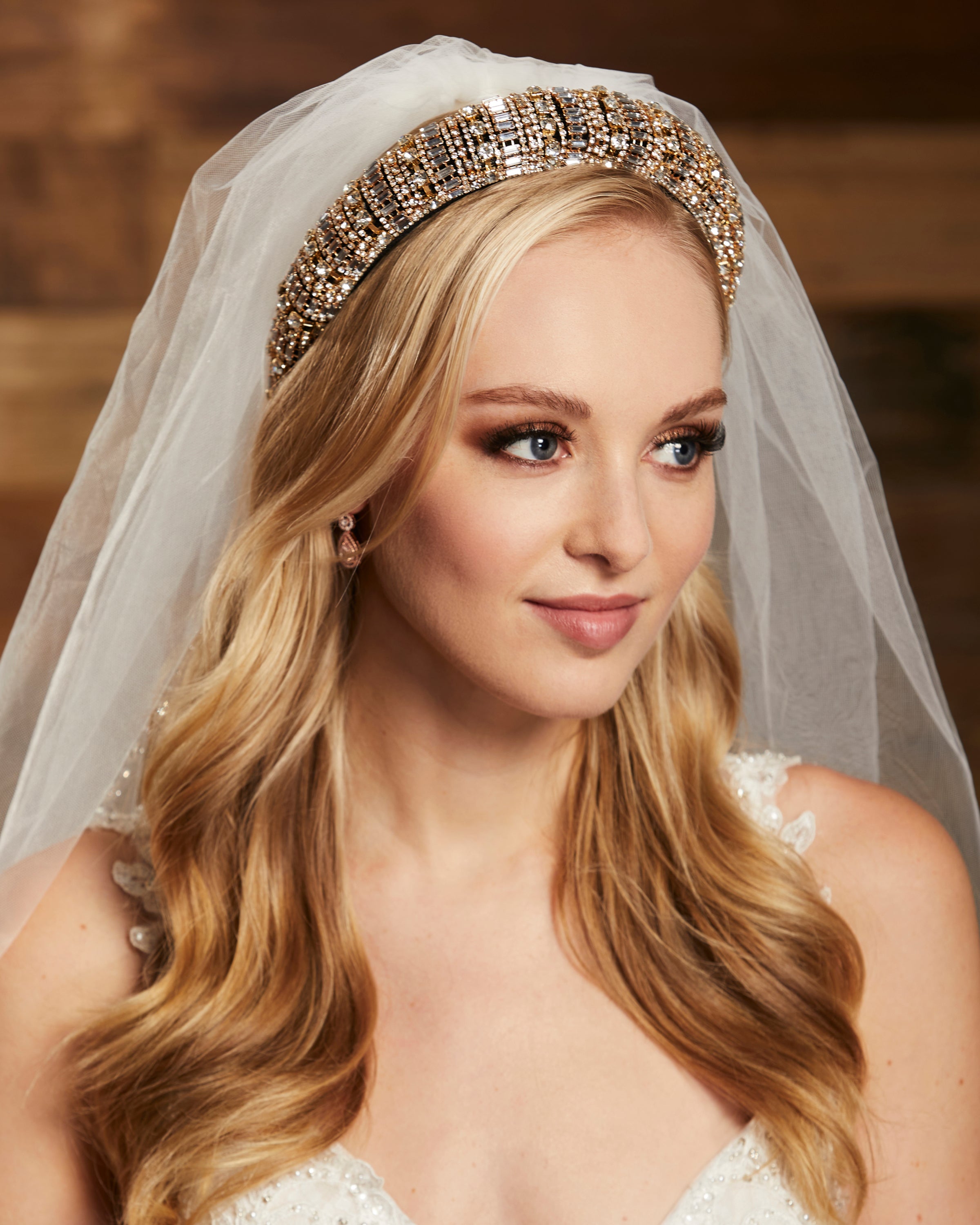 Wide rhinestone headband in gold or silver