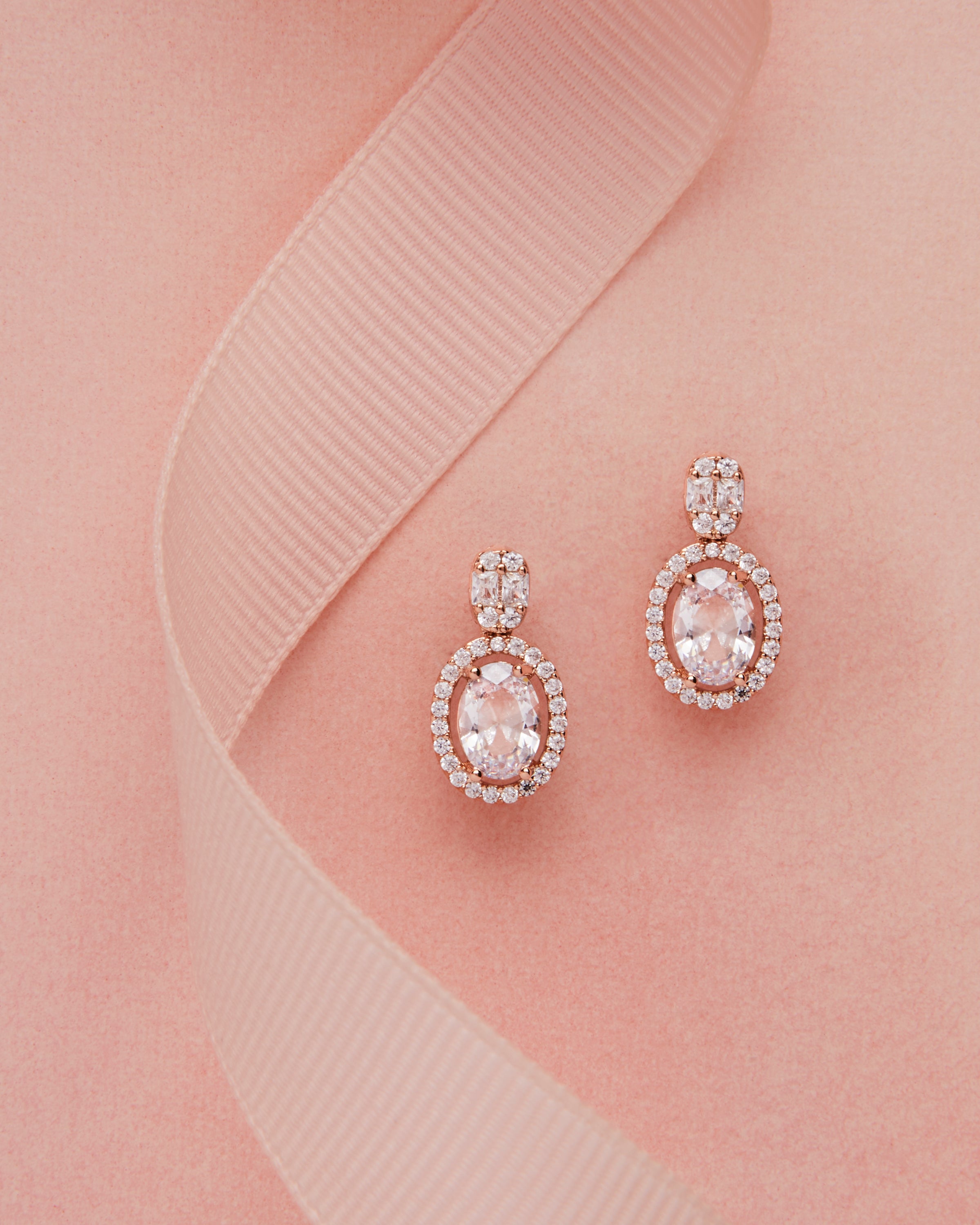 Rhinestone drop earrings. Available in rose gold, gold or silver