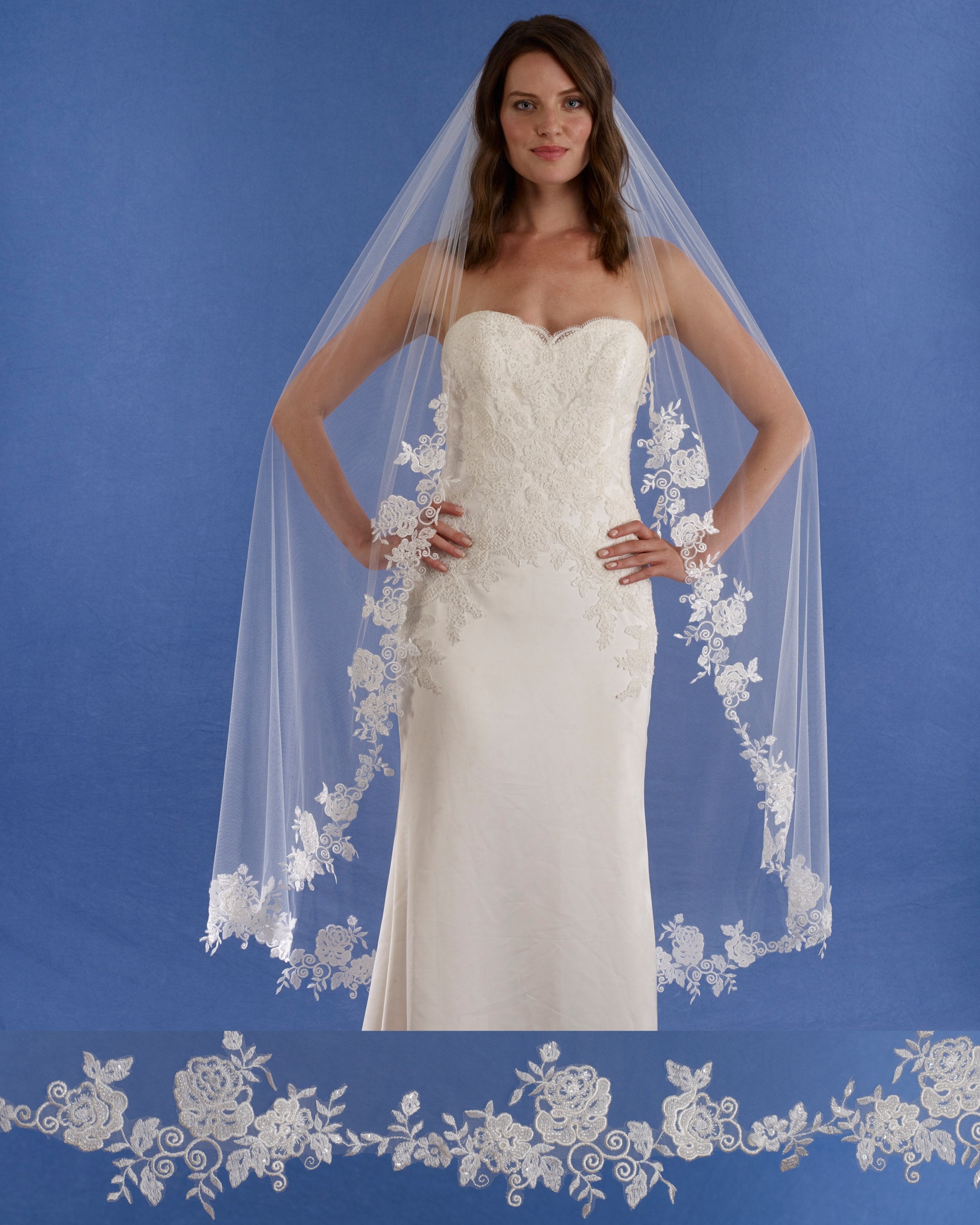 Sequin Lace mantilla scalloped veil