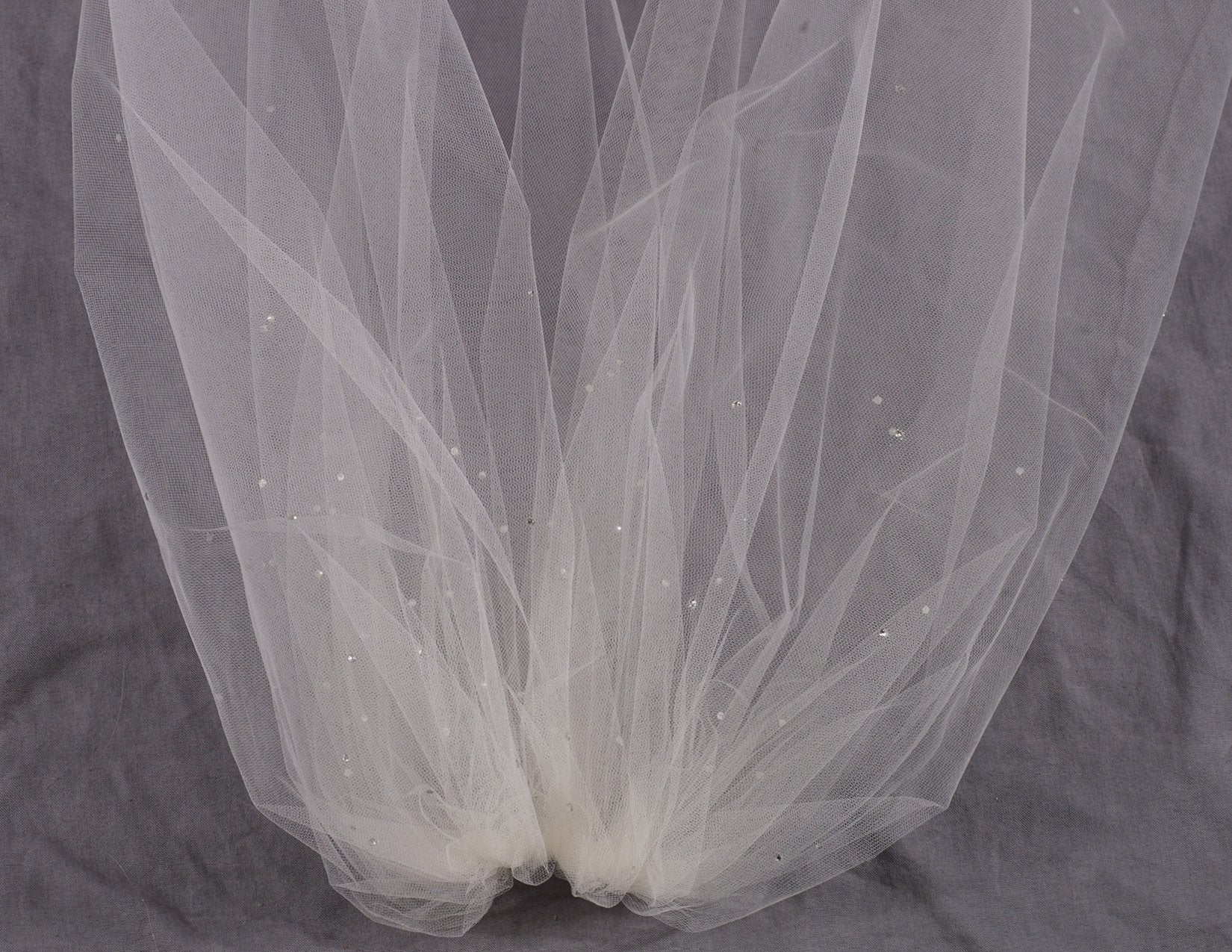Long 1 tier bubble veil with scattered rhinestones.