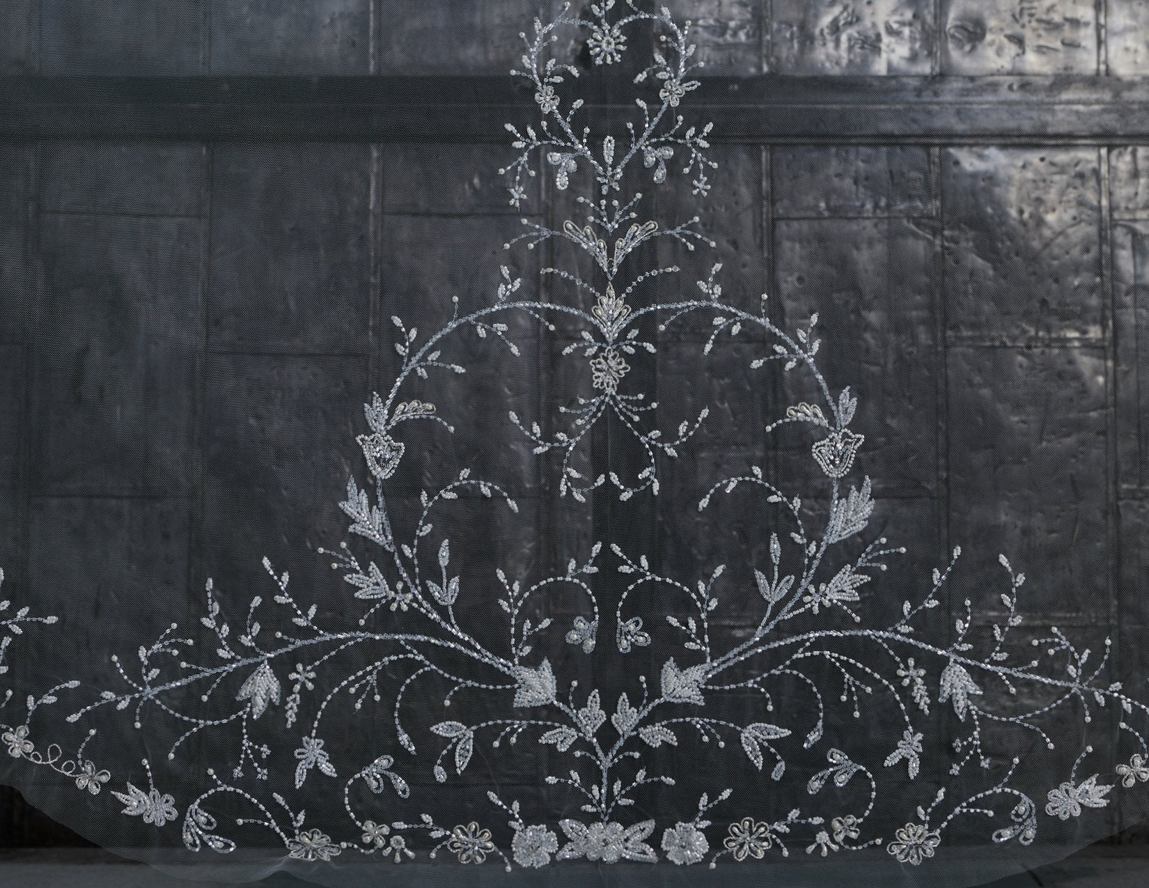 Our veils are crafted using the highest quality tulle, chosen for its delicate drape and lightweight feel. We hold our materials to the highest standards, sourcing fine laces and embellishments that elevate each design. Every veil is thoughtfully hand beaded, hand painted, and carefully sewn with love, resulting in timeless pieces that feel as special as the moment they’re worn.