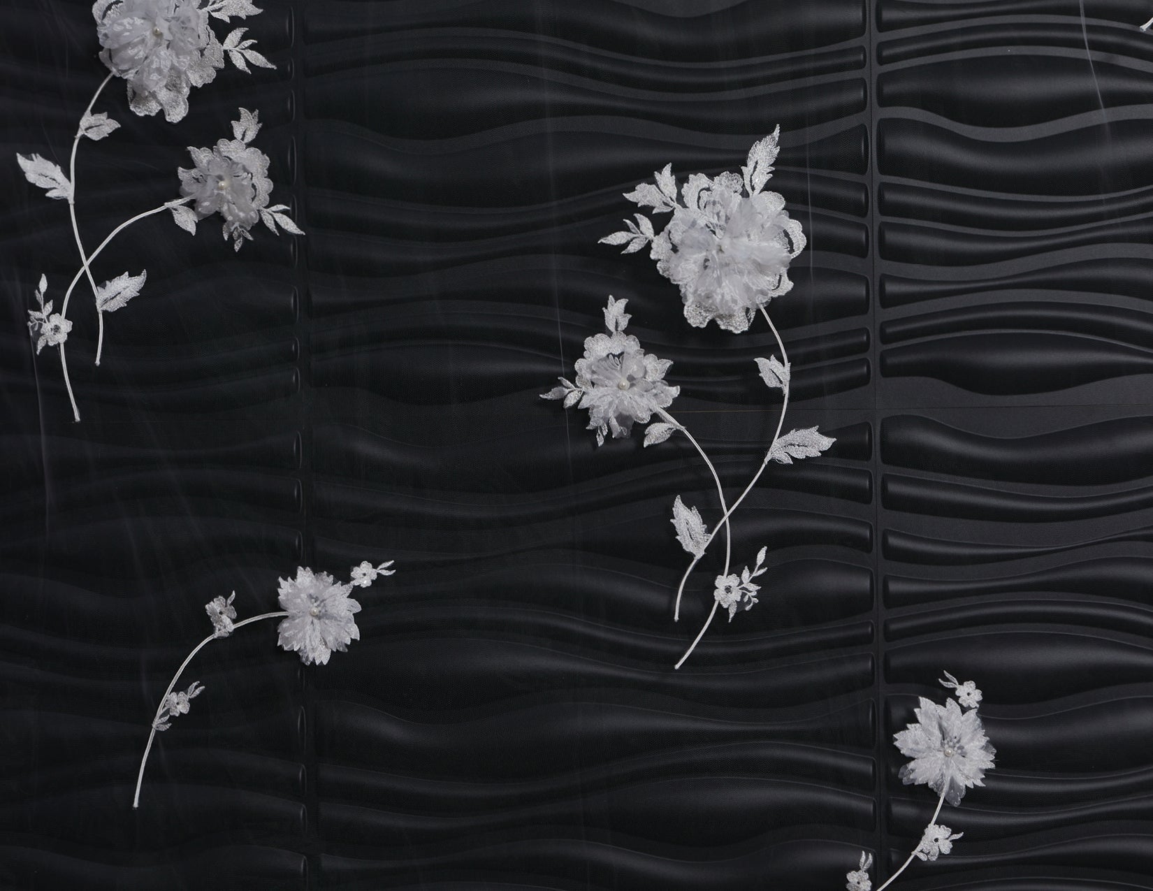 Lace flower appliques with organza petals with pearls and sequins