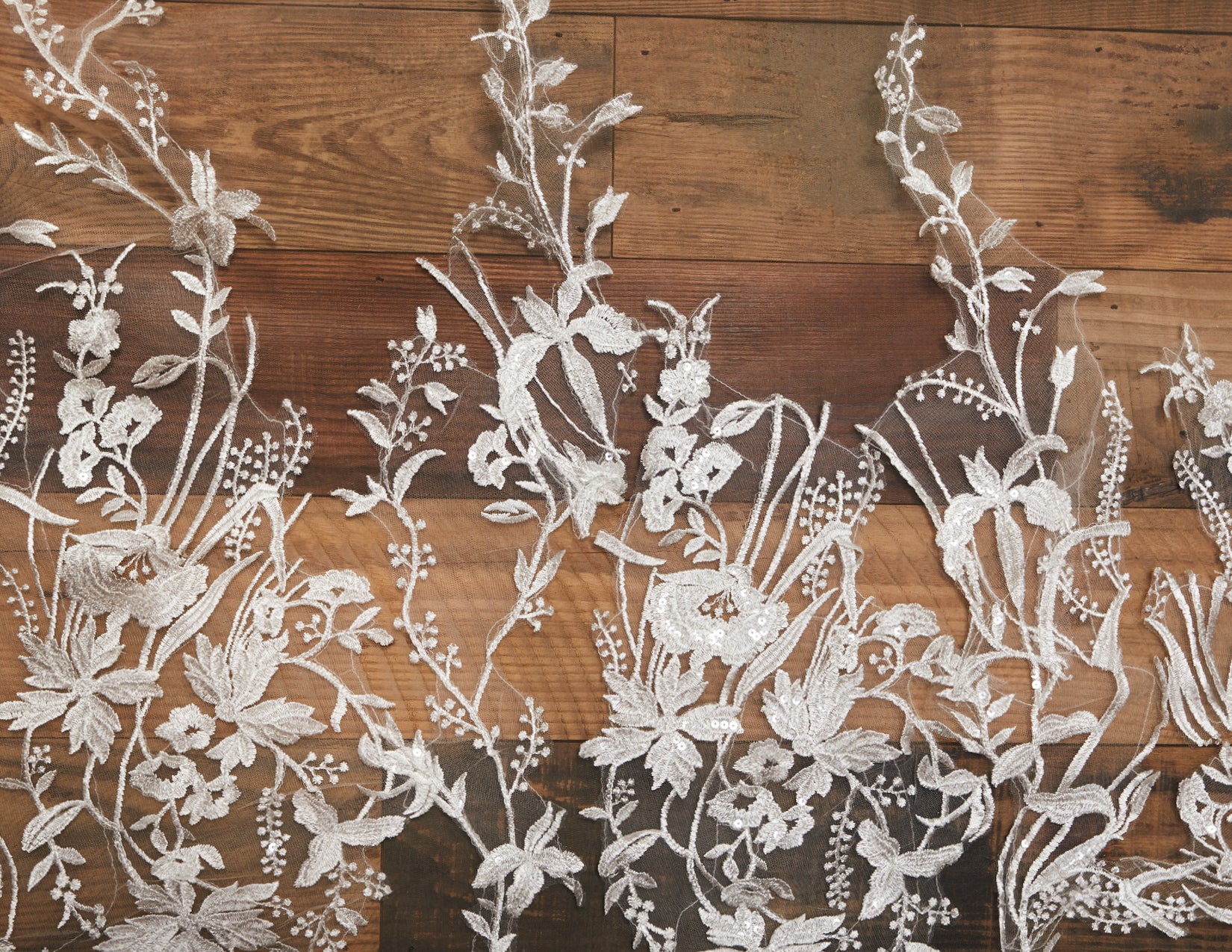 Sequin floral lace. Lace starts 42” down