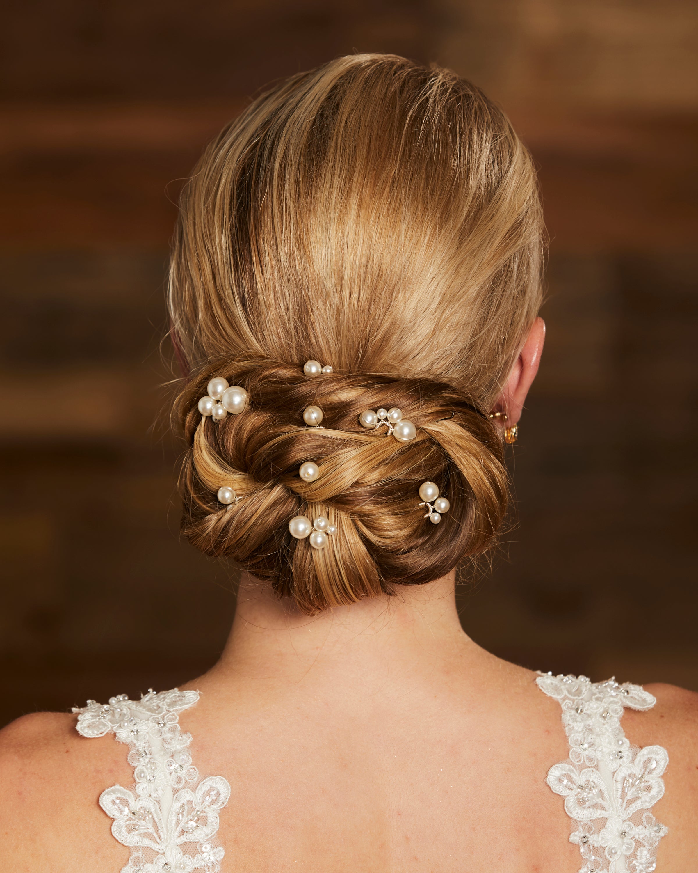 Beaded rhinestone bobby pin sets. Available in gold or silver