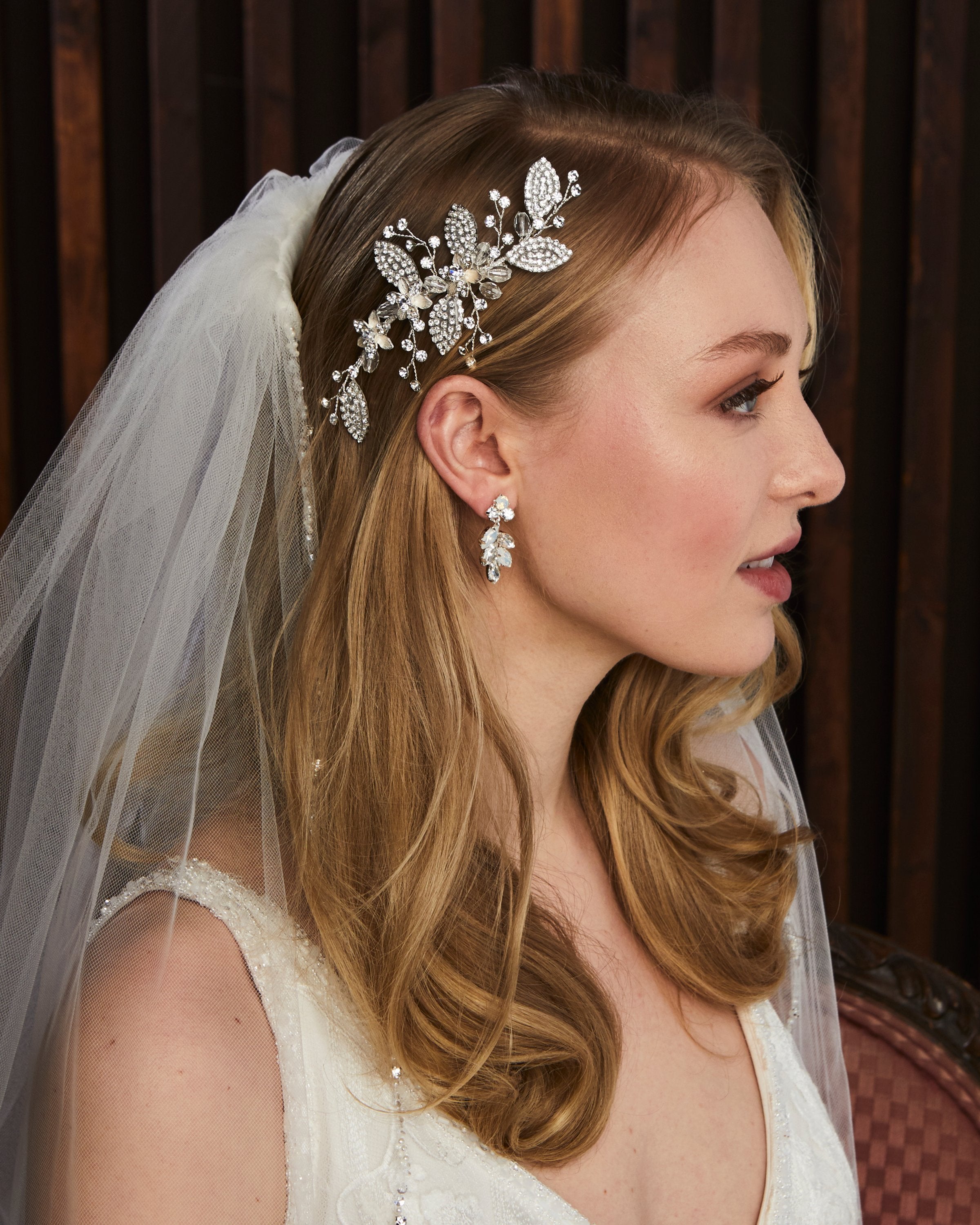 Handcrafted using rhinestones, pearls, beads, cast metal components, crystals, and other fine finishes, our headpieces are designed to bring timeless beauty and refined sparkle to a bride’s look. Each piece is silver or gold plated to ensure longevity, durability, and lasting quality.