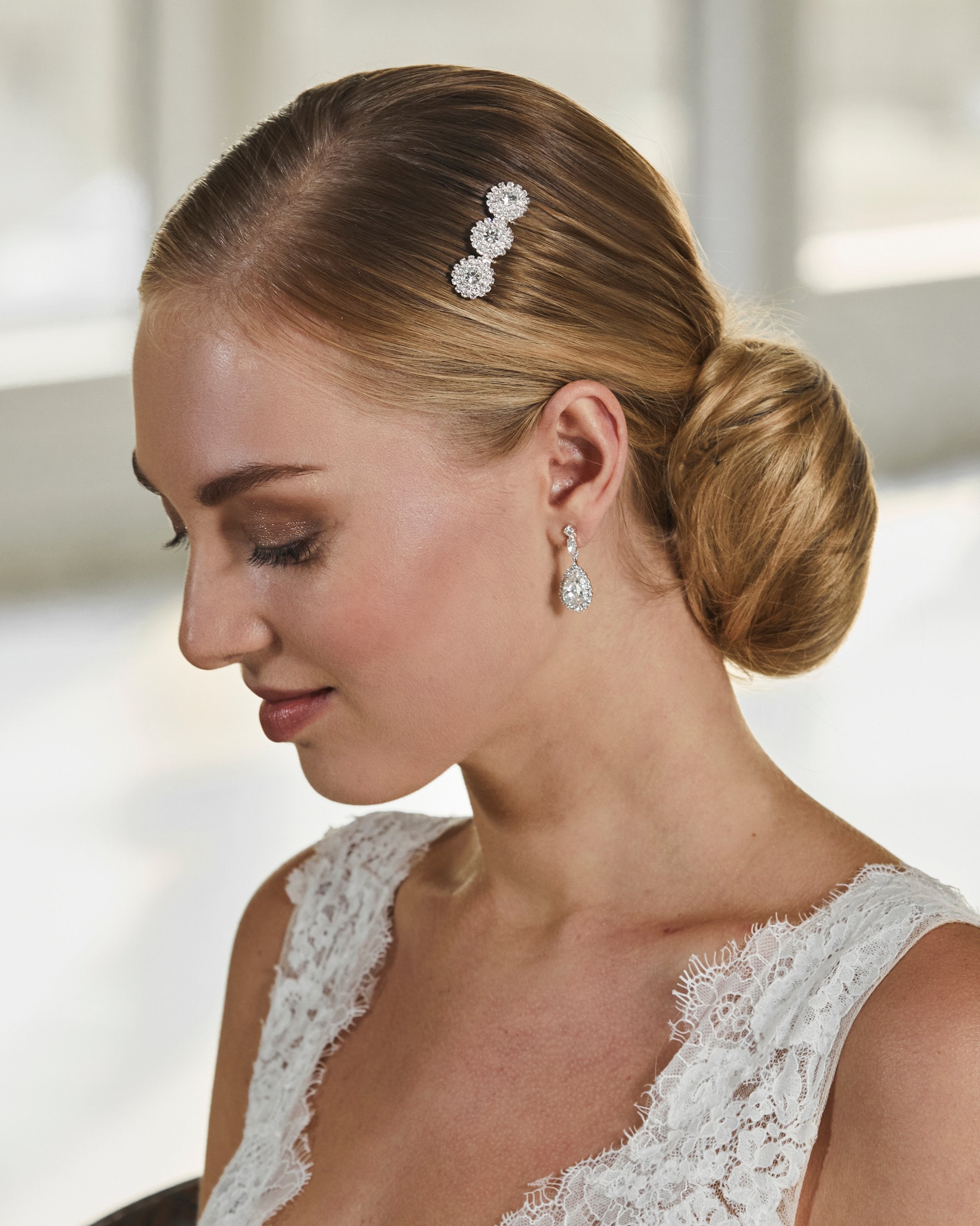Handcrafted using rhinestones, pearls, beads, cast metal components, crystals, and other fine finishes, our headpieces are designed to bring timeless beauty and refined sparkle to a bride’s look. Each piece is silver or gold plated to ensure longevity, durability, and lasting quality.