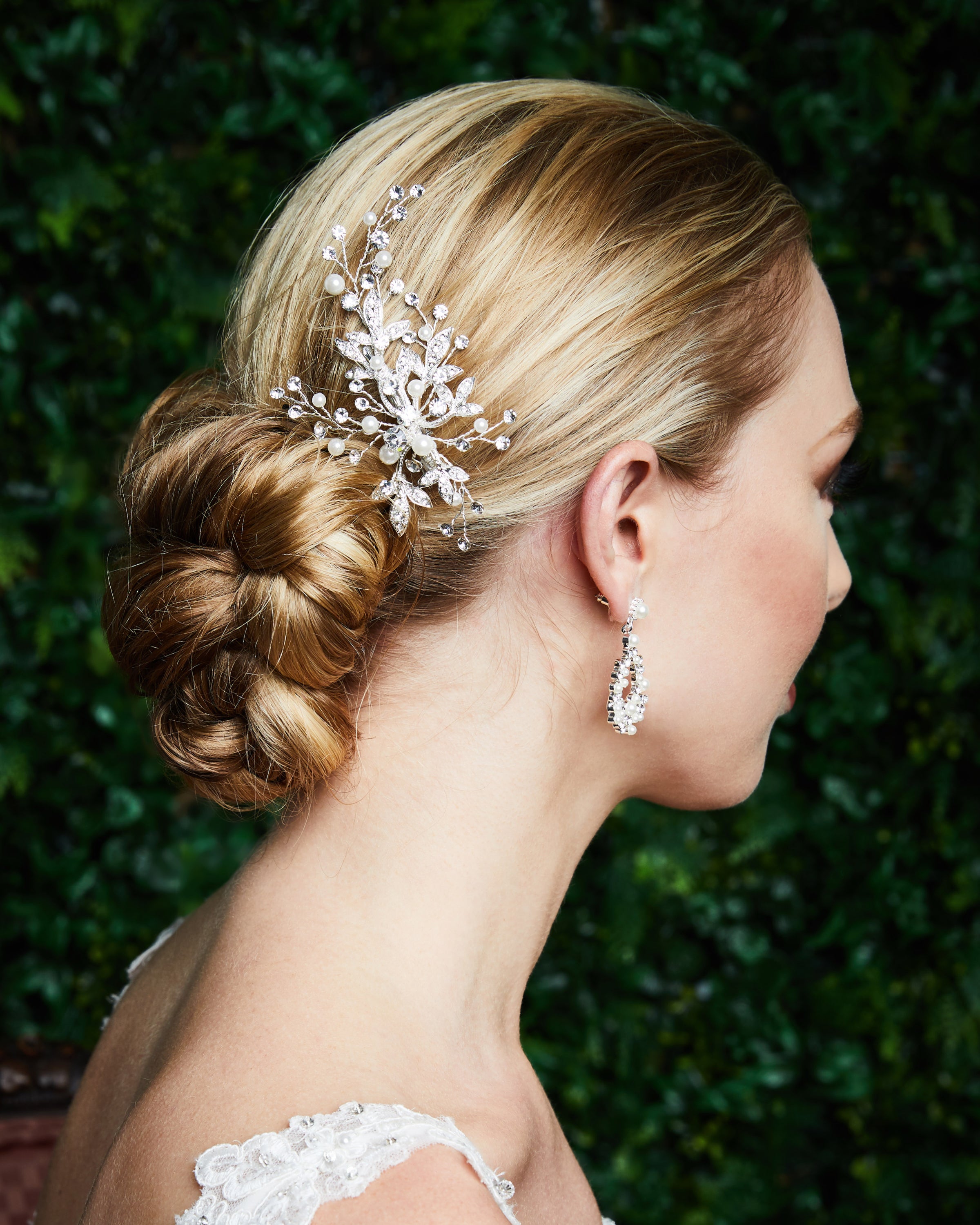 Handcrafted using rhinestones, pearls, beads, cast metal components, crystals, and other fine finishes, our headpieces are designed to bring timeless beauty and refined sparkle to a bride’s look. Each piece is silver or gold plated to ensure longevity, durability, and lasting quality.