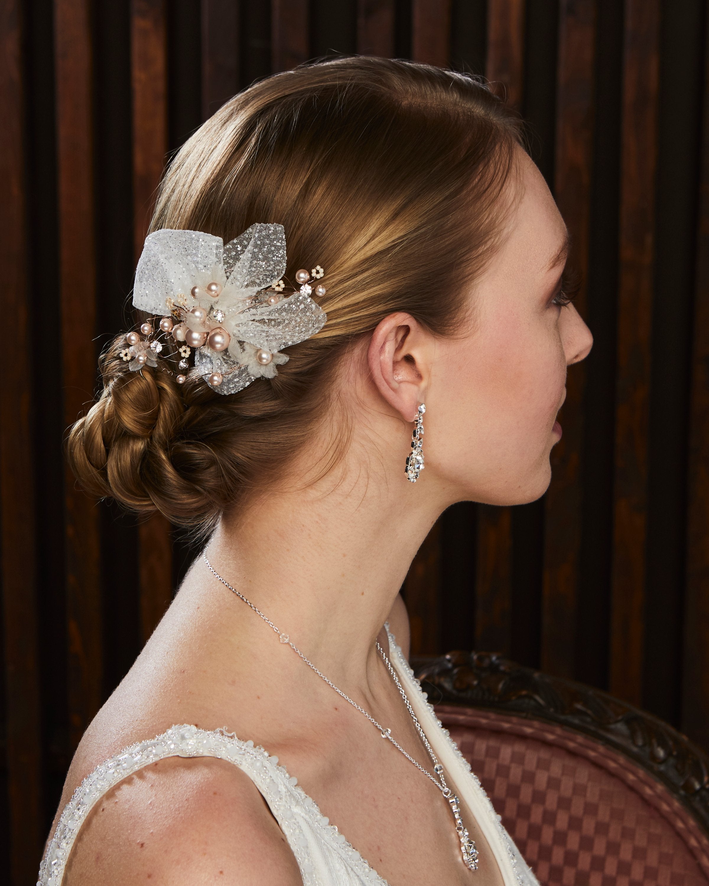 Handcrafted using rhinestones, pearls, beads, cast metal components, crystals, and other fine finishes, our headpieces are designed to bring timeless beauty and refined sparkle to a bride’s look. Each piece is silver or gold plated to ensure longevity, durability, and lasting quality.