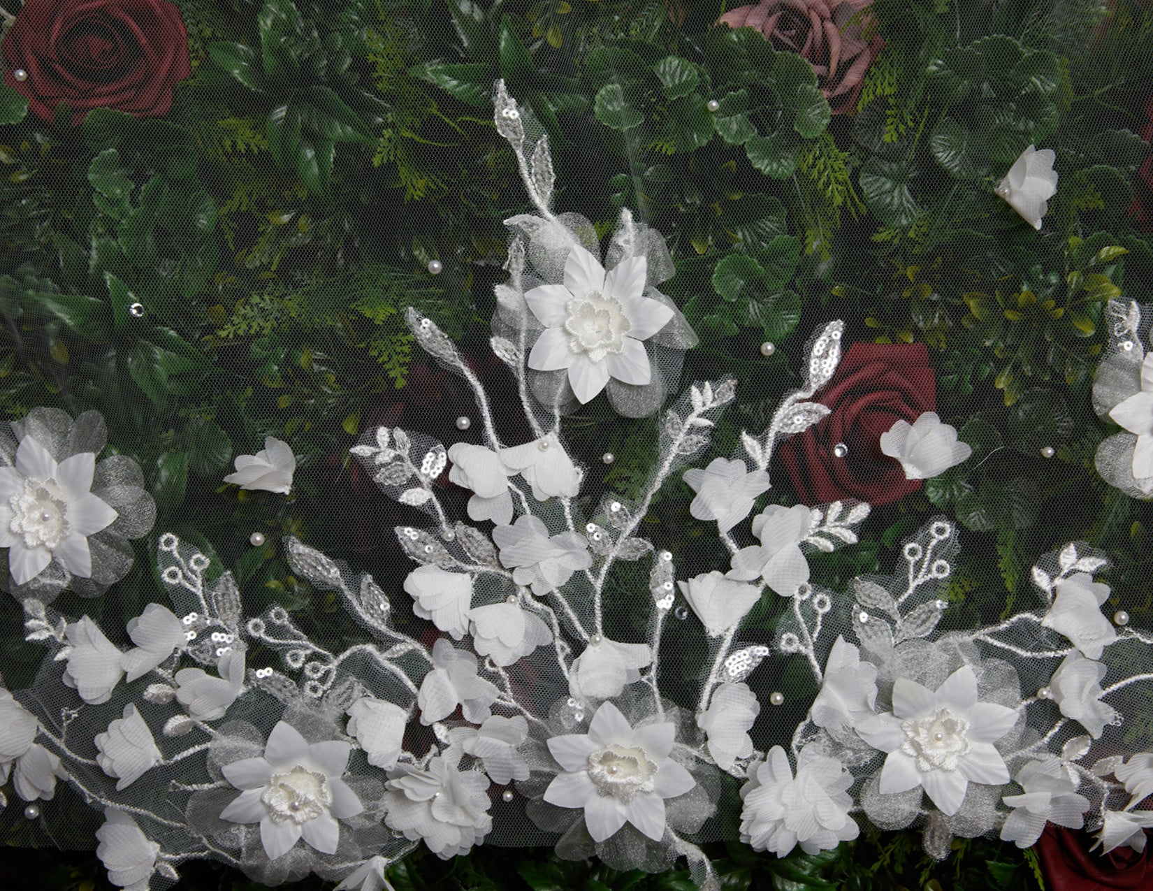 3D Flower veil with scattered pearls. Lace starts 42” down