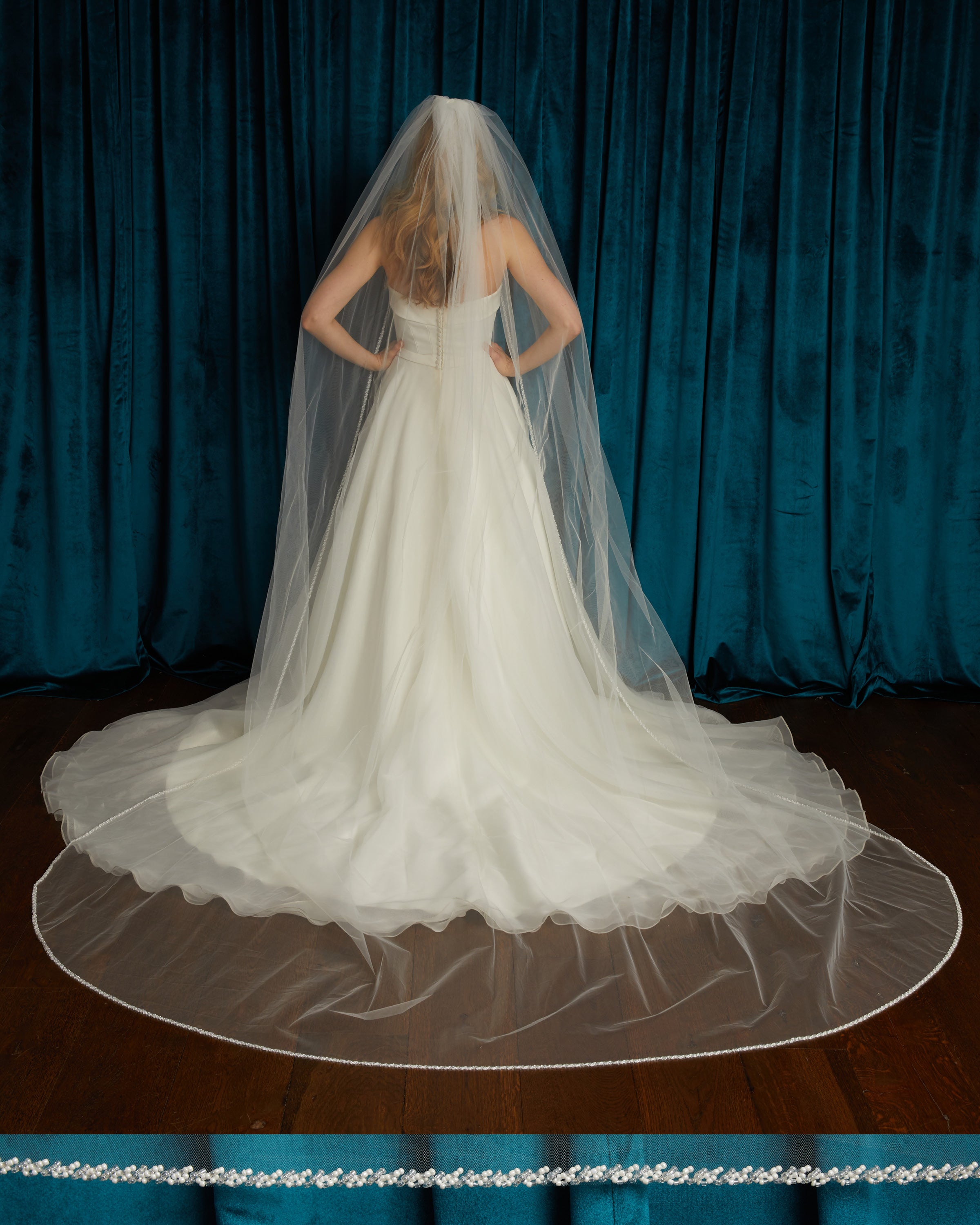 Our veils are crafted using the highest quality tulle, chosen for its delicate drape and lightweight feel. We hold our materials to the highest standards, sourcing fine laces and embellishments that elevate each design. Every veil is thoughtfully hand beaded, hand painted, and carefully sewn with love, resulting in timeless pieces that feel as special as the moment they’re worn.