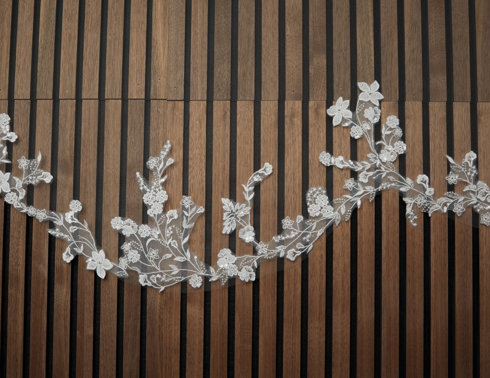 Our veils are crafted using the highest quality tulle, chosen for its delicate drape and lightweight feel. We hold our materials to the highest standards, sourcing fine laces and embellishments that elevate each design. Every veil is thoughtfully hand beaded, hand painted, and carefully sewn with love, resulting in timeless pieces that feel as special as the moment they’re worn.