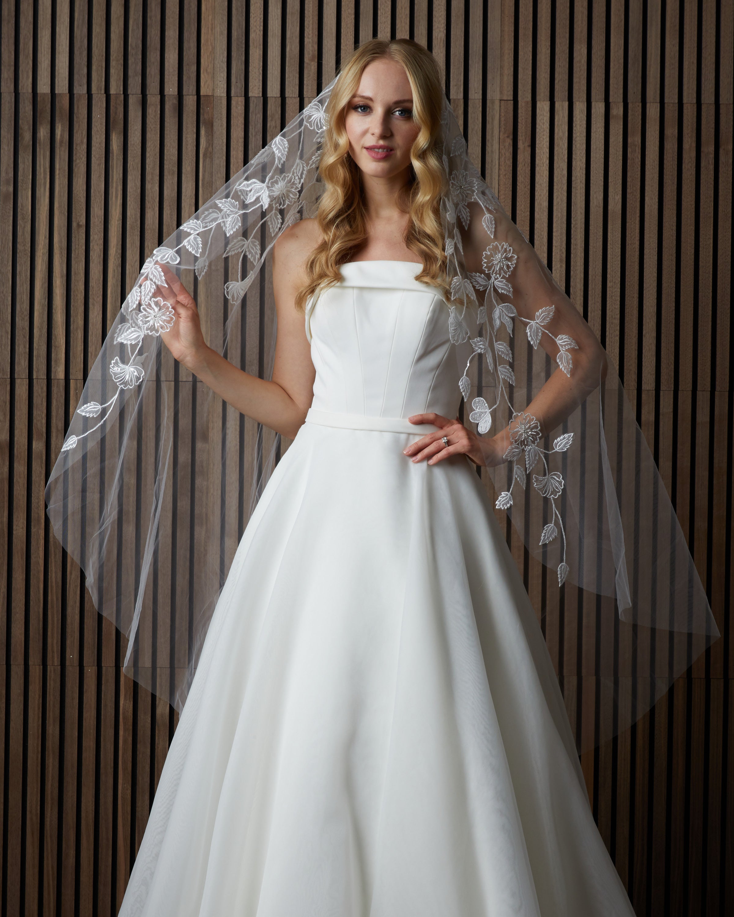 Angel cut embroidered veil