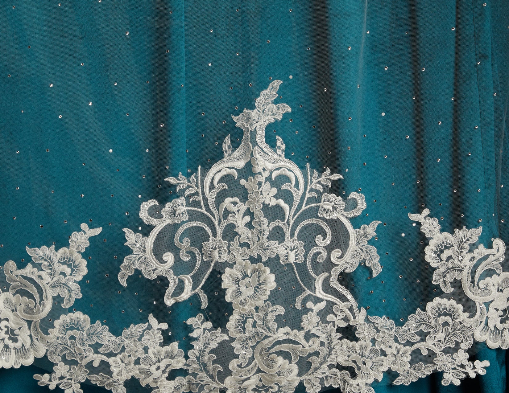 Our veils are crafted using the highest quality tulle, chosen for its delicate drape and lightweight feel. We hold our materials to the highest standards, sourcing fine laces and embellishments that elevate each design. Every veil is thoughtfully hand beaded, hand painted, and carefully sewn with love, resulting in timeless pieces that feel as special as the moment they’re worn.