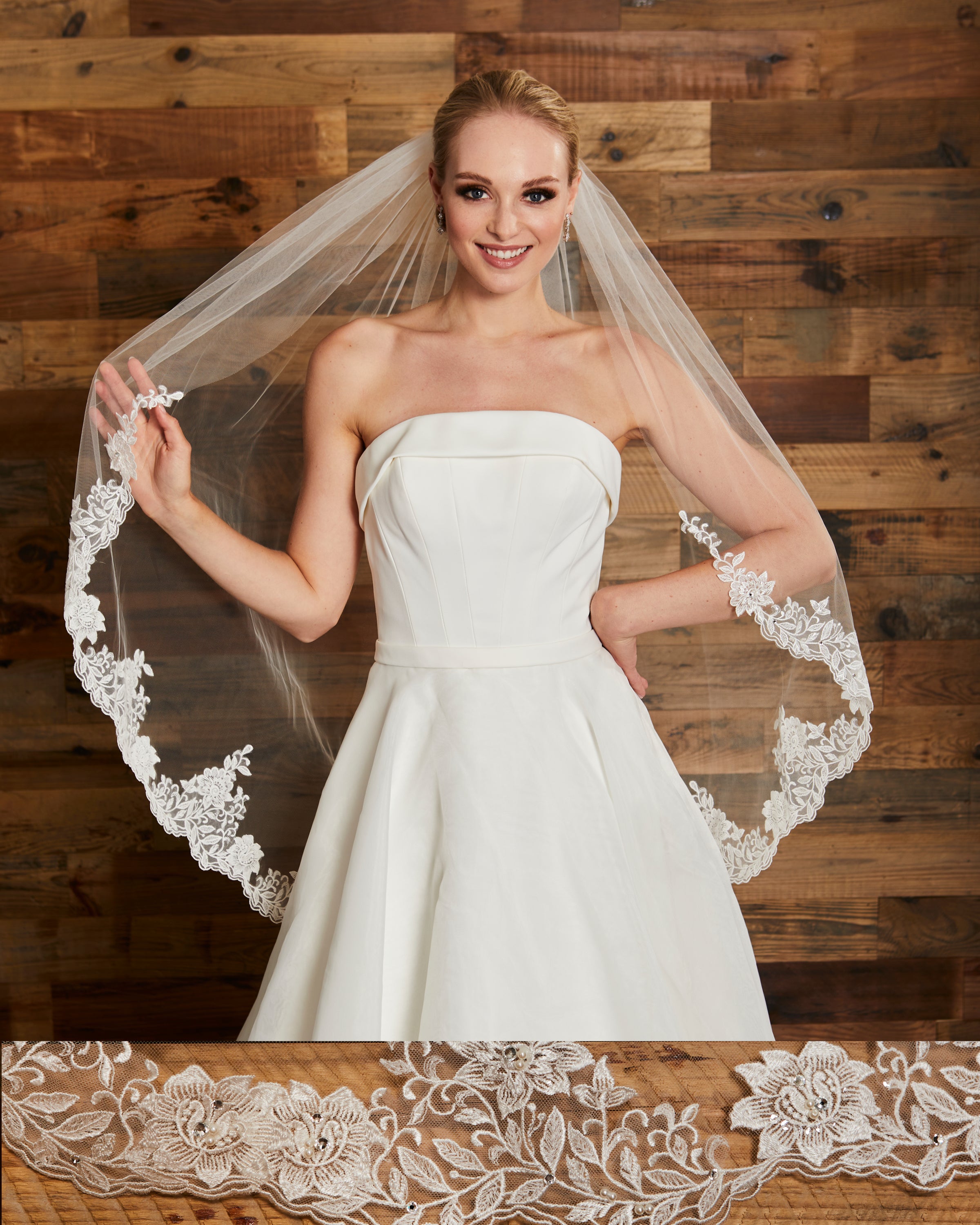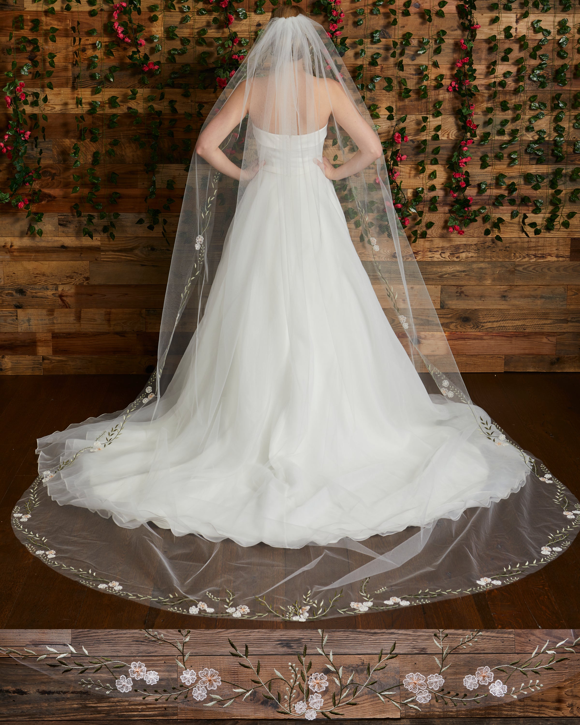 Ivory and champagne floral and leaf embroidered veil