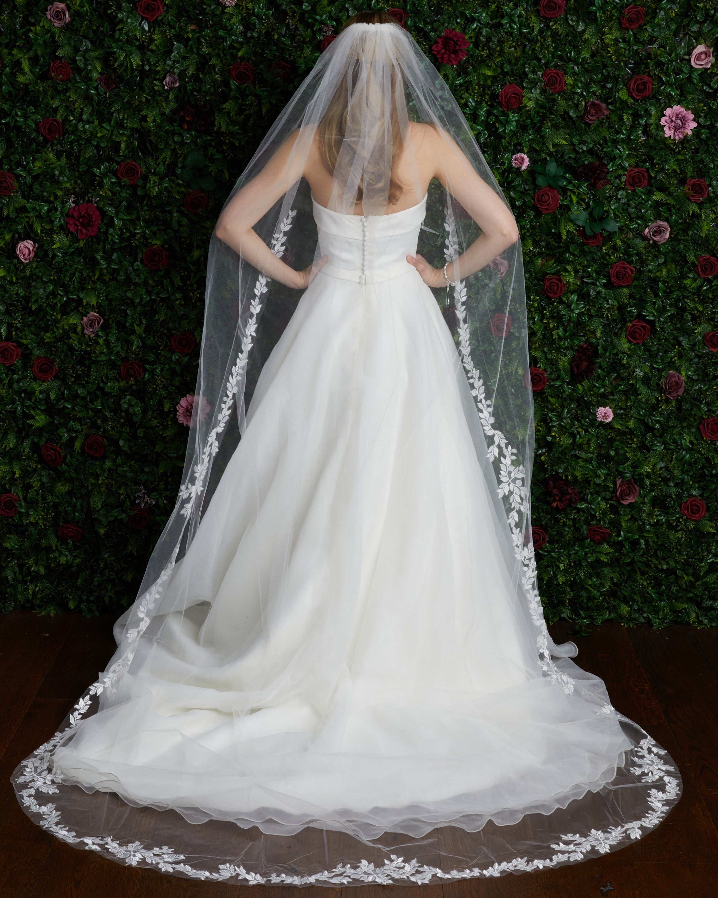Our veils are crafted using the highest quality tulle, chosen for its delicate drape and lightweight feel. We hold our materials to the highest standards, sourcing fine laces and embellishments that elevate each design. Every veil is thoughtfully hand beaded, hand painted, and carefully sewn with love, resulting in timeless pieces that feel as special as the moment they’re worn.