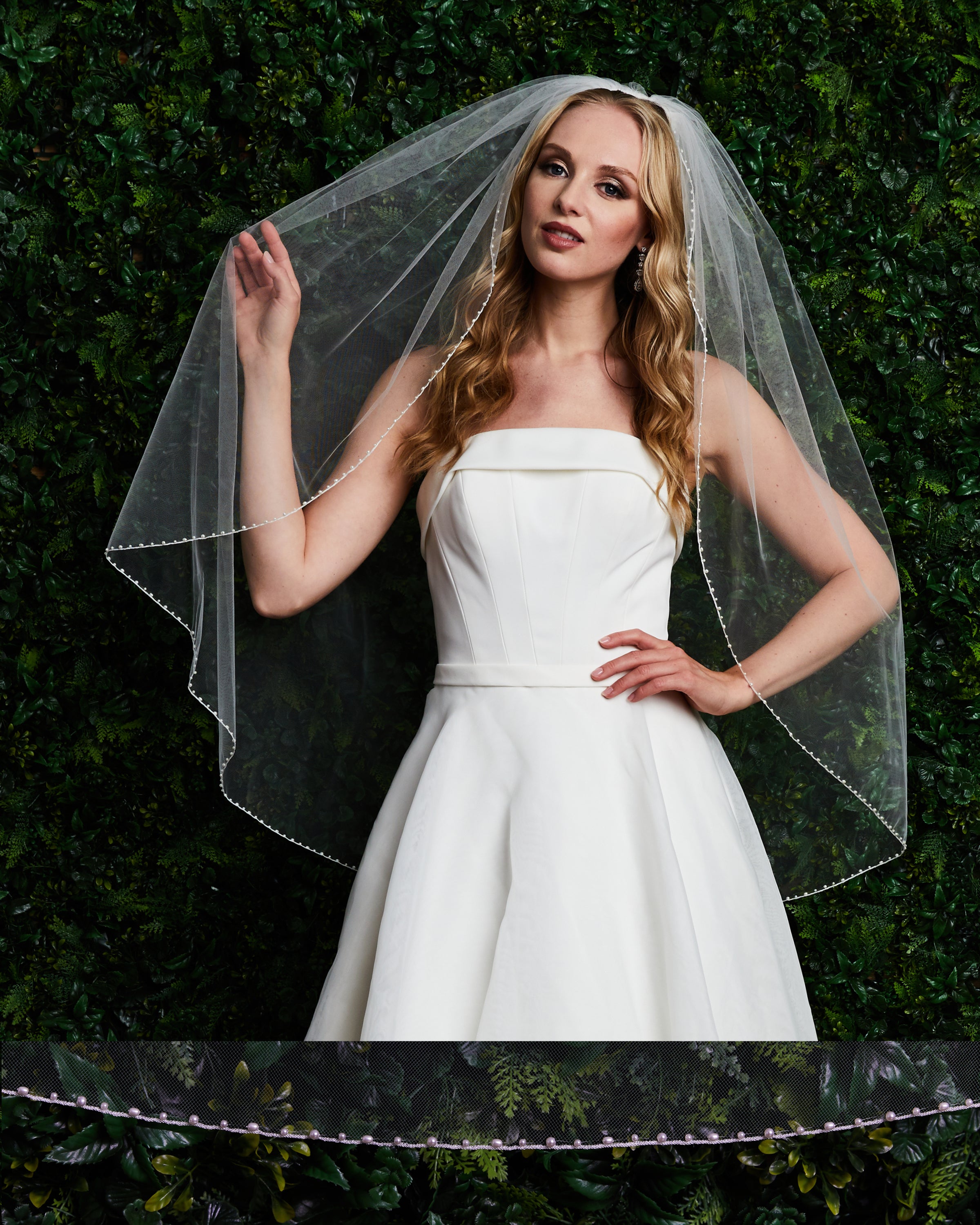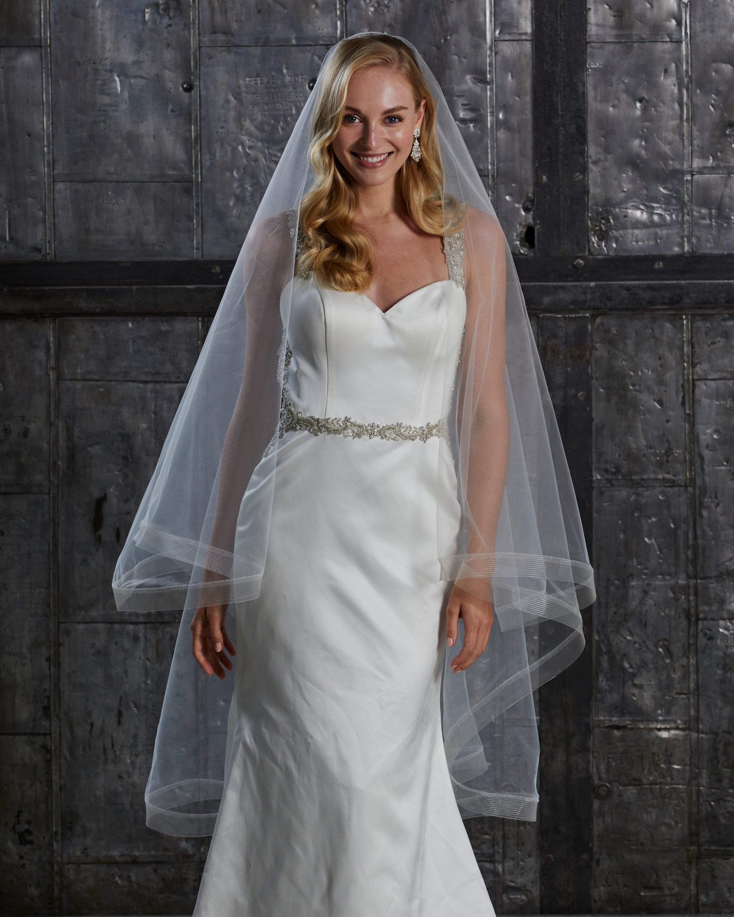 Horsehair edge 1.5” wide horsehair. Fold over veil sewn flat