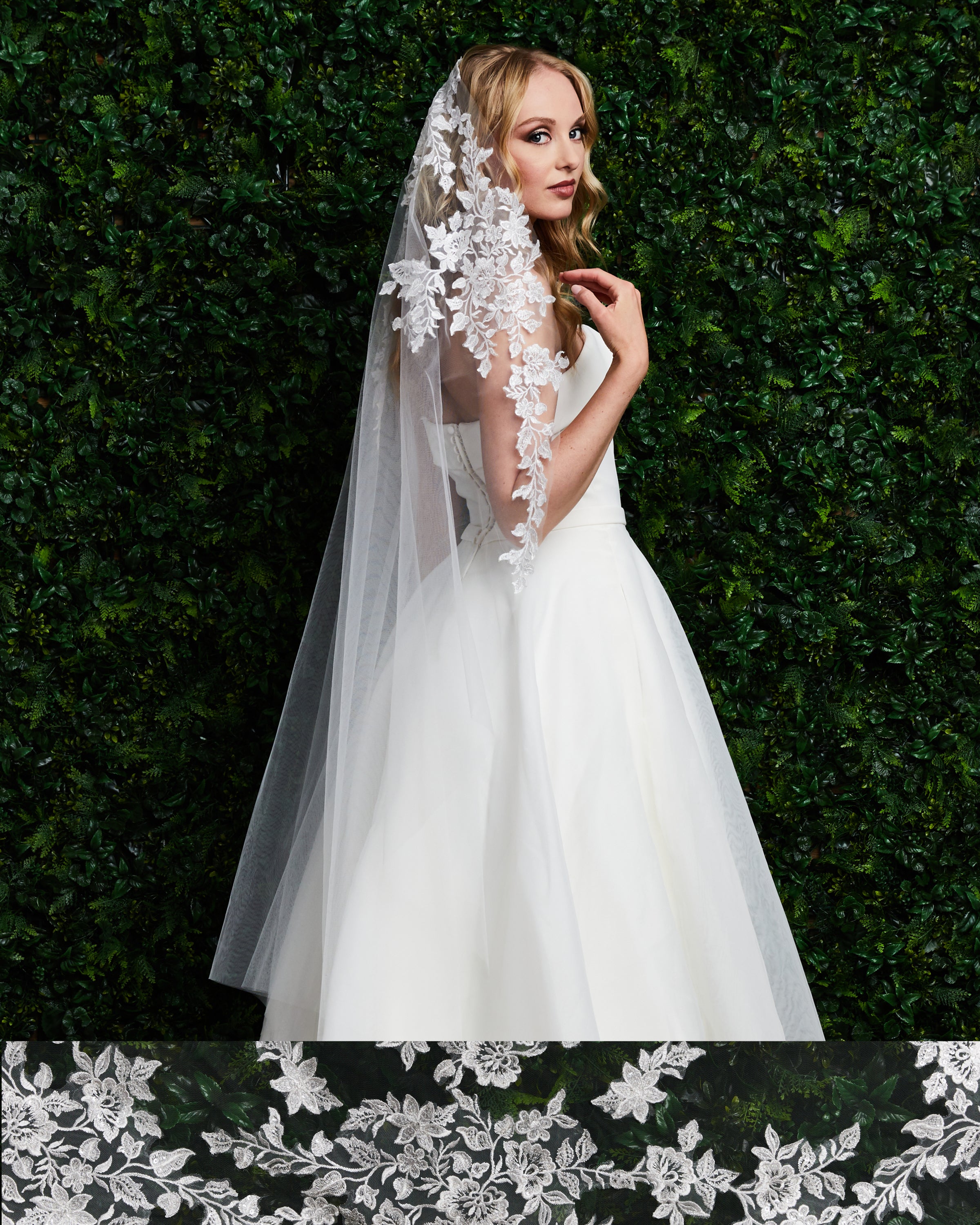 Modified mantilla lace veil with sequins