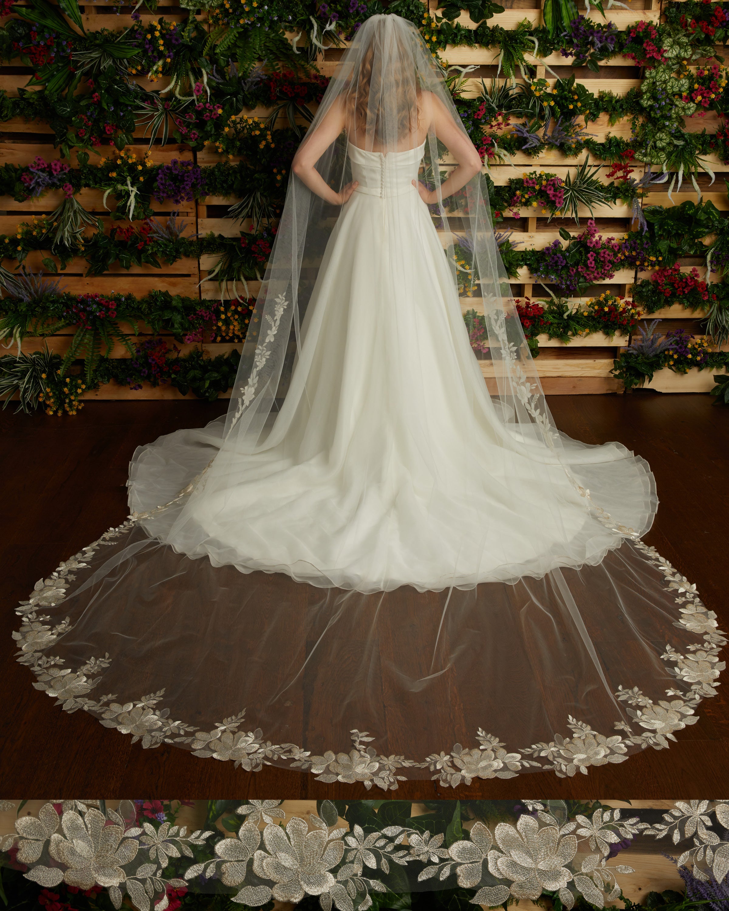 Floral lace available in gold or silver lace. Lace starts 42” down.
