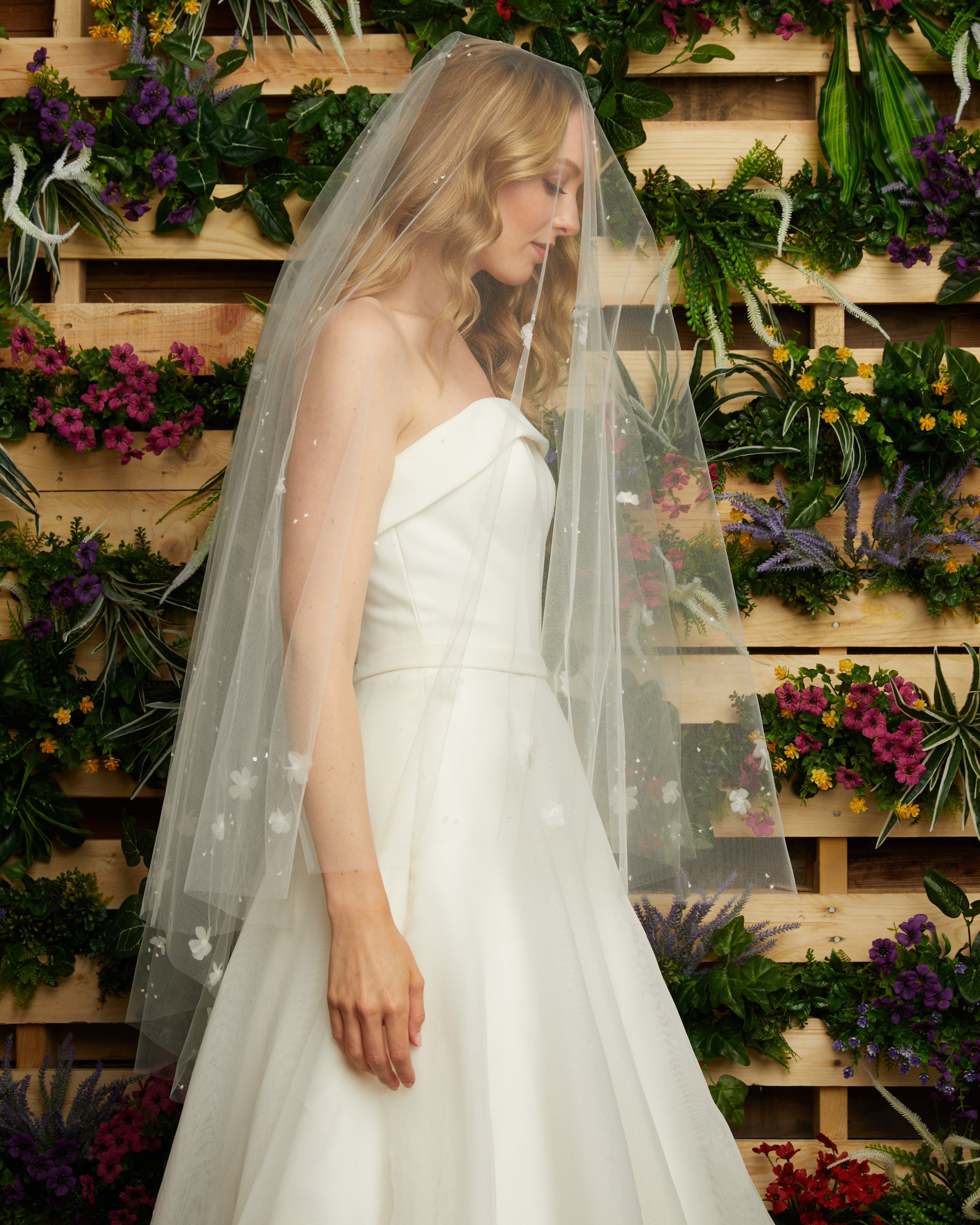 Pink embroidered flower veil