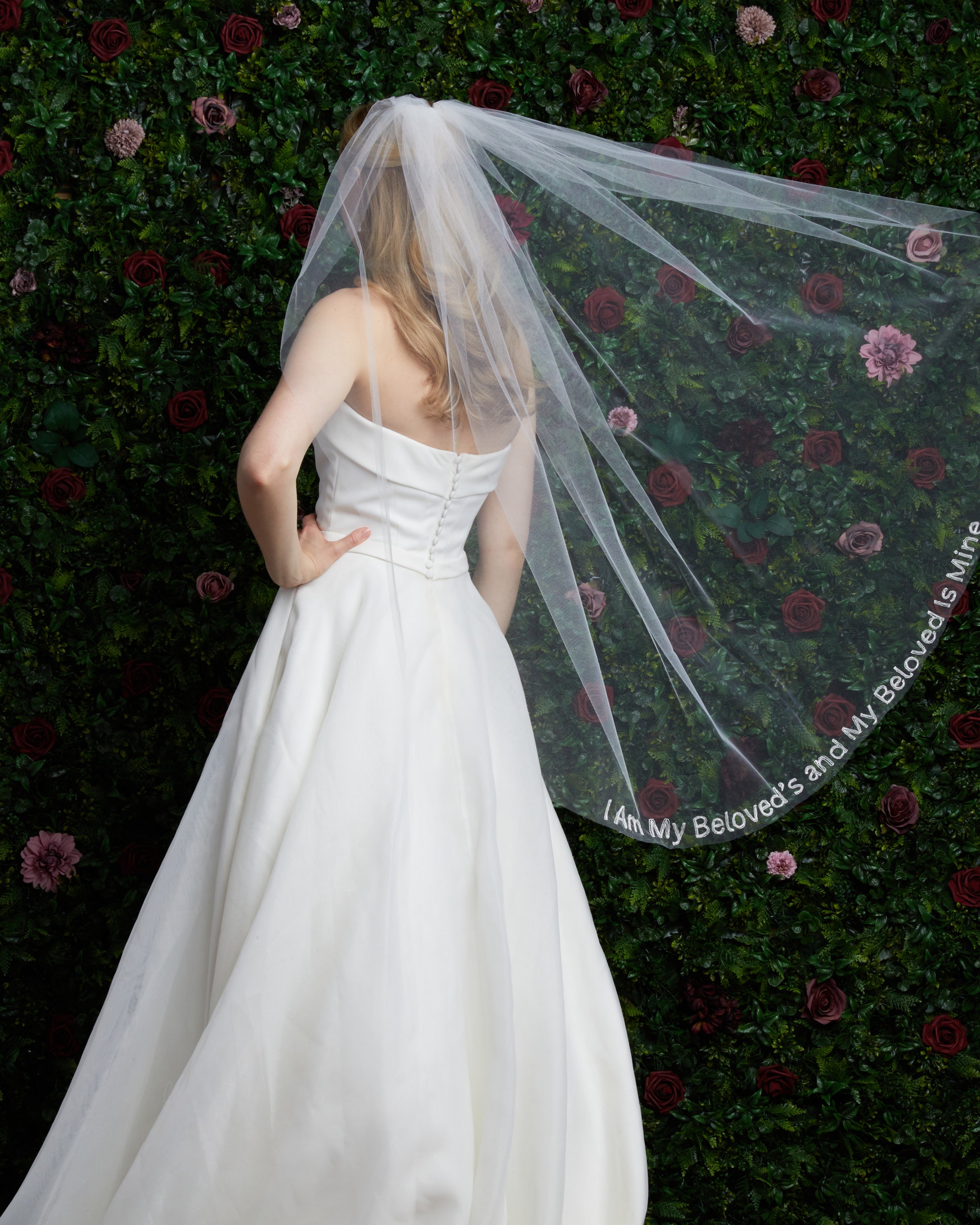 Our veils are crafted using the highest quality tulle, chosen for its delicate drape and lightweight feel. We hold our materials to the highest standards, sourcing fine laces and embellishments that elevate each design. Every veil is thoughtfully hand beaded, hand painted, and carefully sewn with love, resulting in timeless pieces that feel as special as the moment they’re worn.