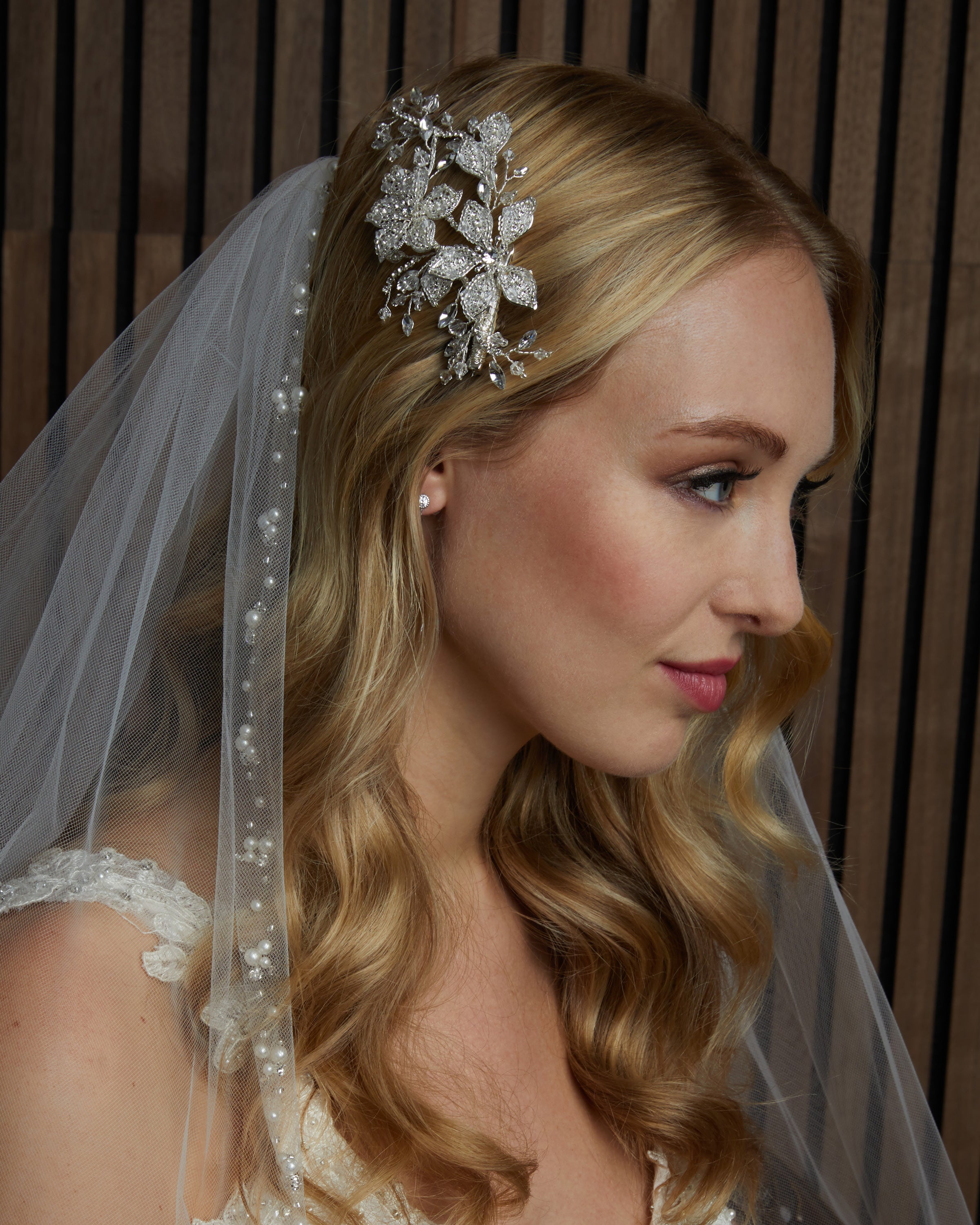 Handcrafted using rhinestones, pearls, beads, cast metal components, crystals, and other fine finishes, our headpieces are designed to bring timeless beauty and refined sparkle to a bride’s look. Each piece is silver or gold plated to ensure longevity, durability, and lasting quality.
