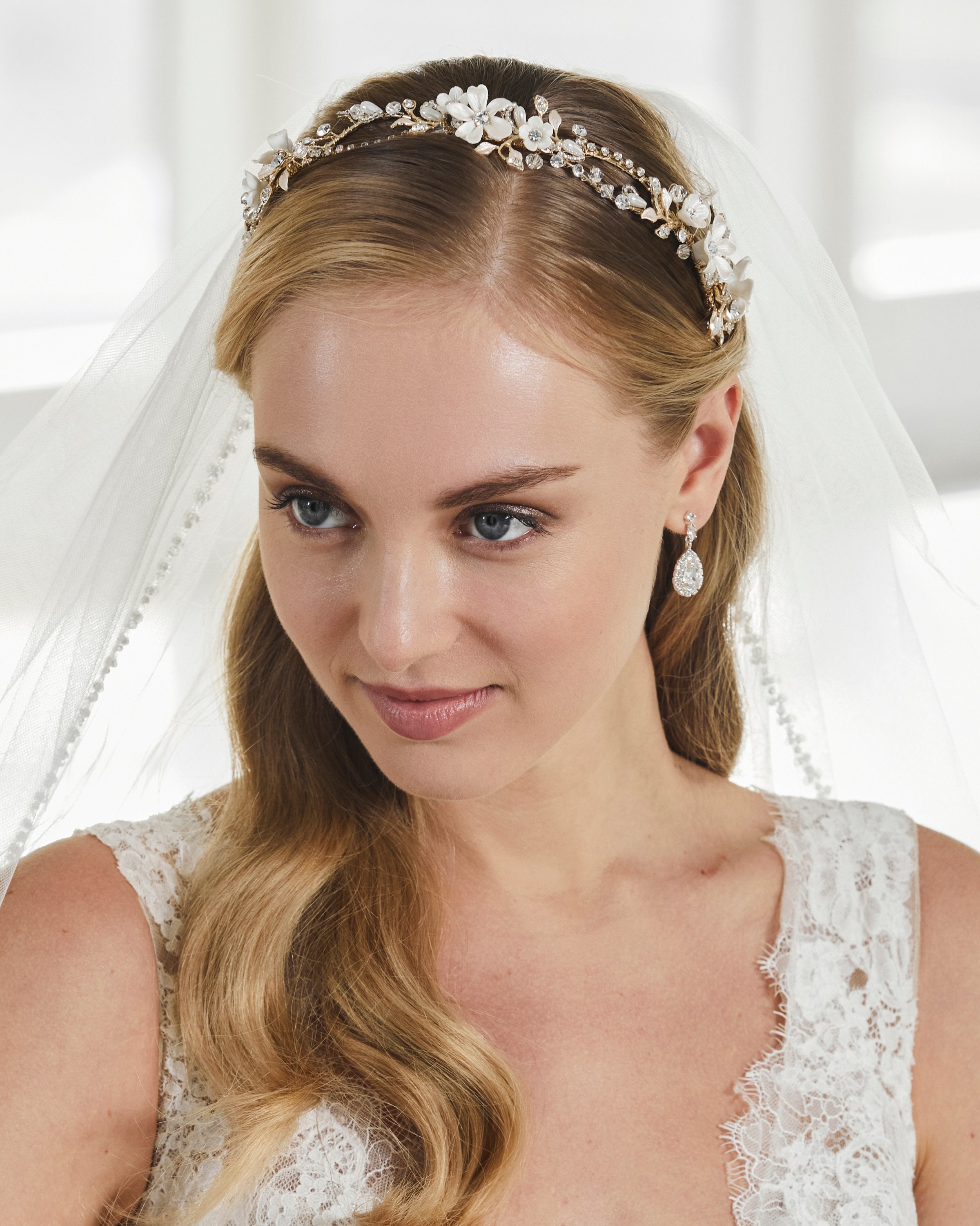 Handcrafted using rhinestones, pearls, beads, cast metal components, crystals, and other fine finishes, our headpieces are designed to bring timeless beauty and refined sparkle to a bride’s look. Each piece is silver or gold plated to ensure longevity, durability, and lasting quality.