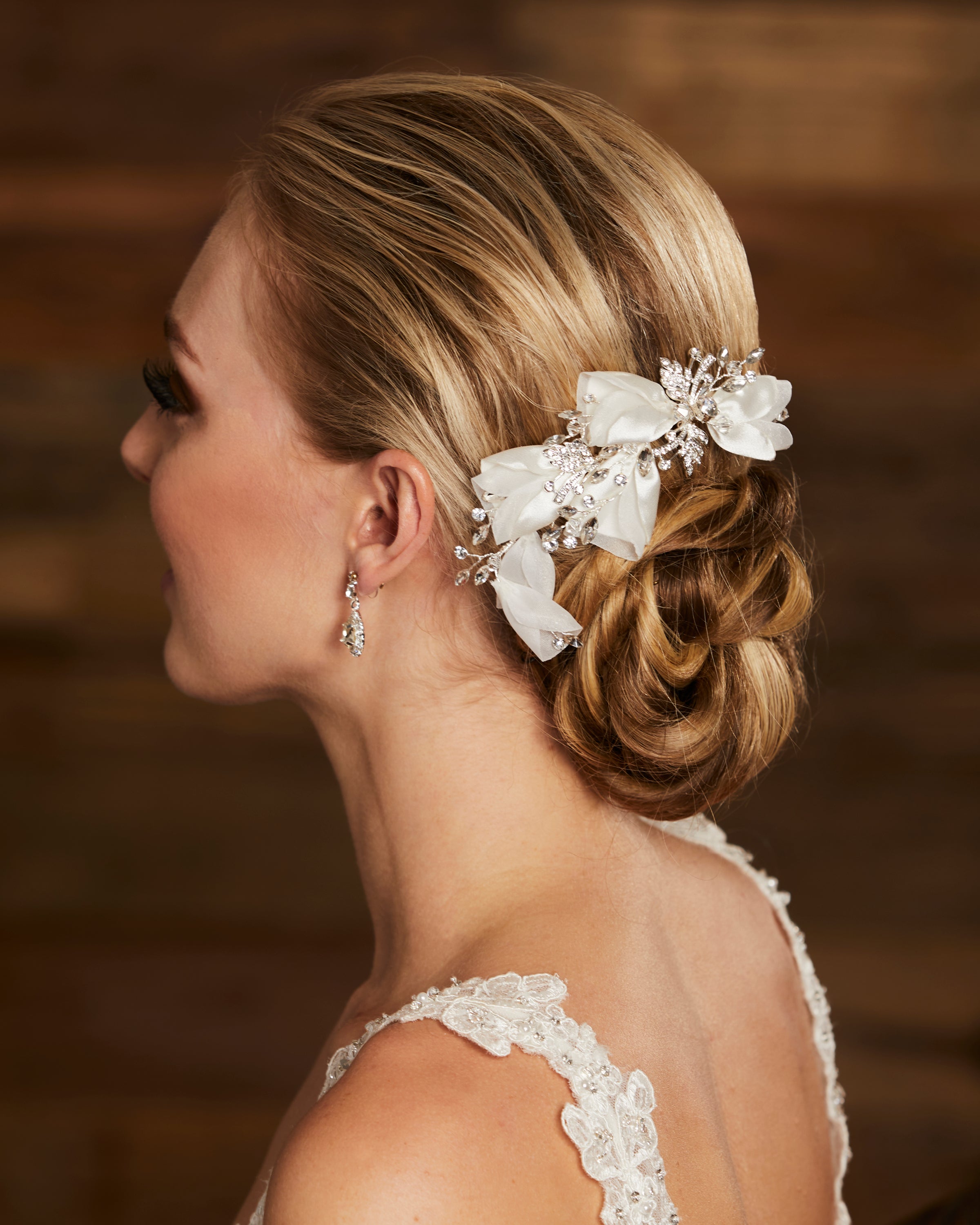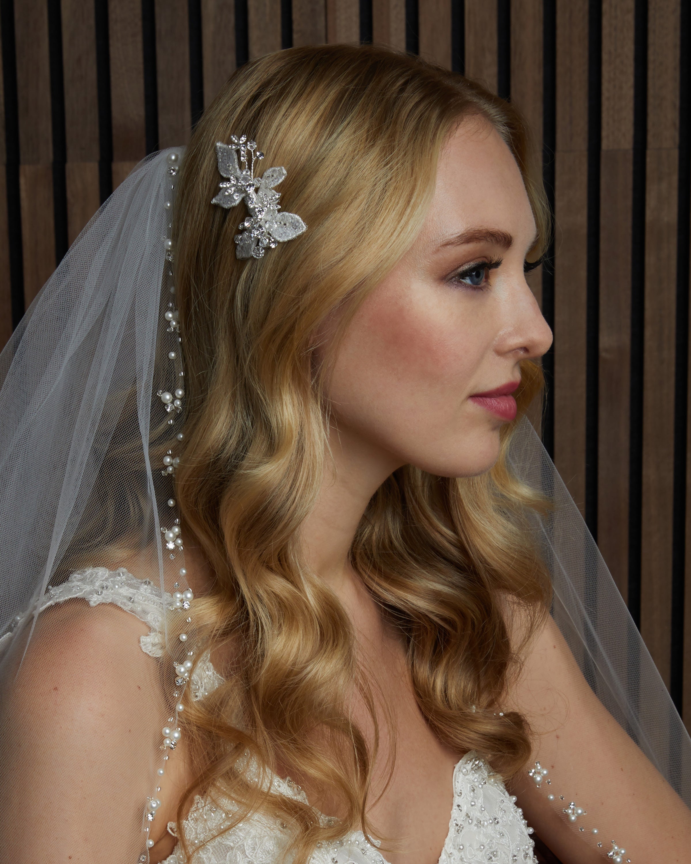 Handcrafted using rhinestones, pearls, beads, cast metal components, crystals, and other fine finishes, our headpieces are designed to bring timeless beauty and refined sparkle to a bride’s look. Each piece is silver or gold plated to ensure longevity, durability, and lasting quality.