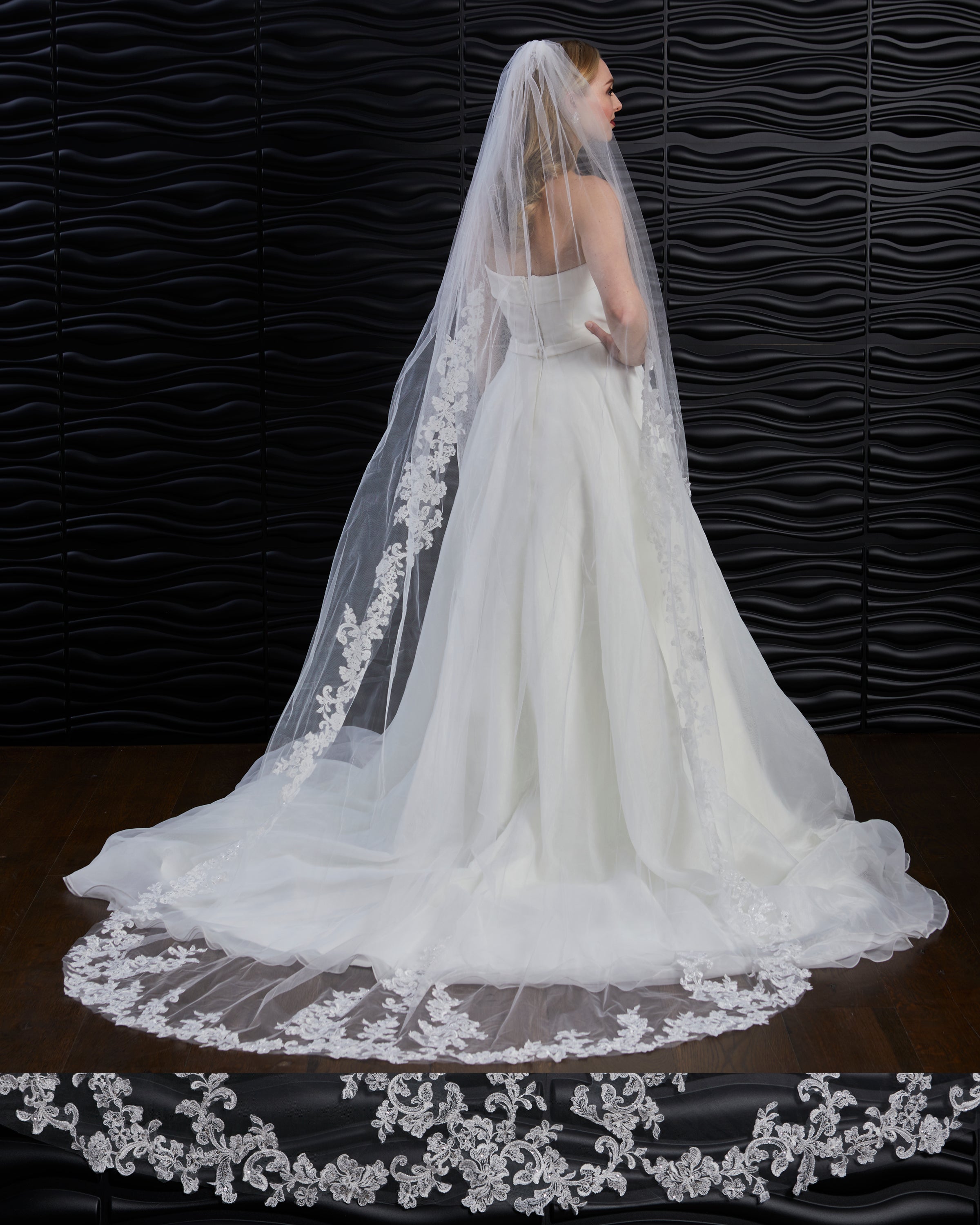 Recycled tulle 3x36”/36” full cut edge veil on metal comb