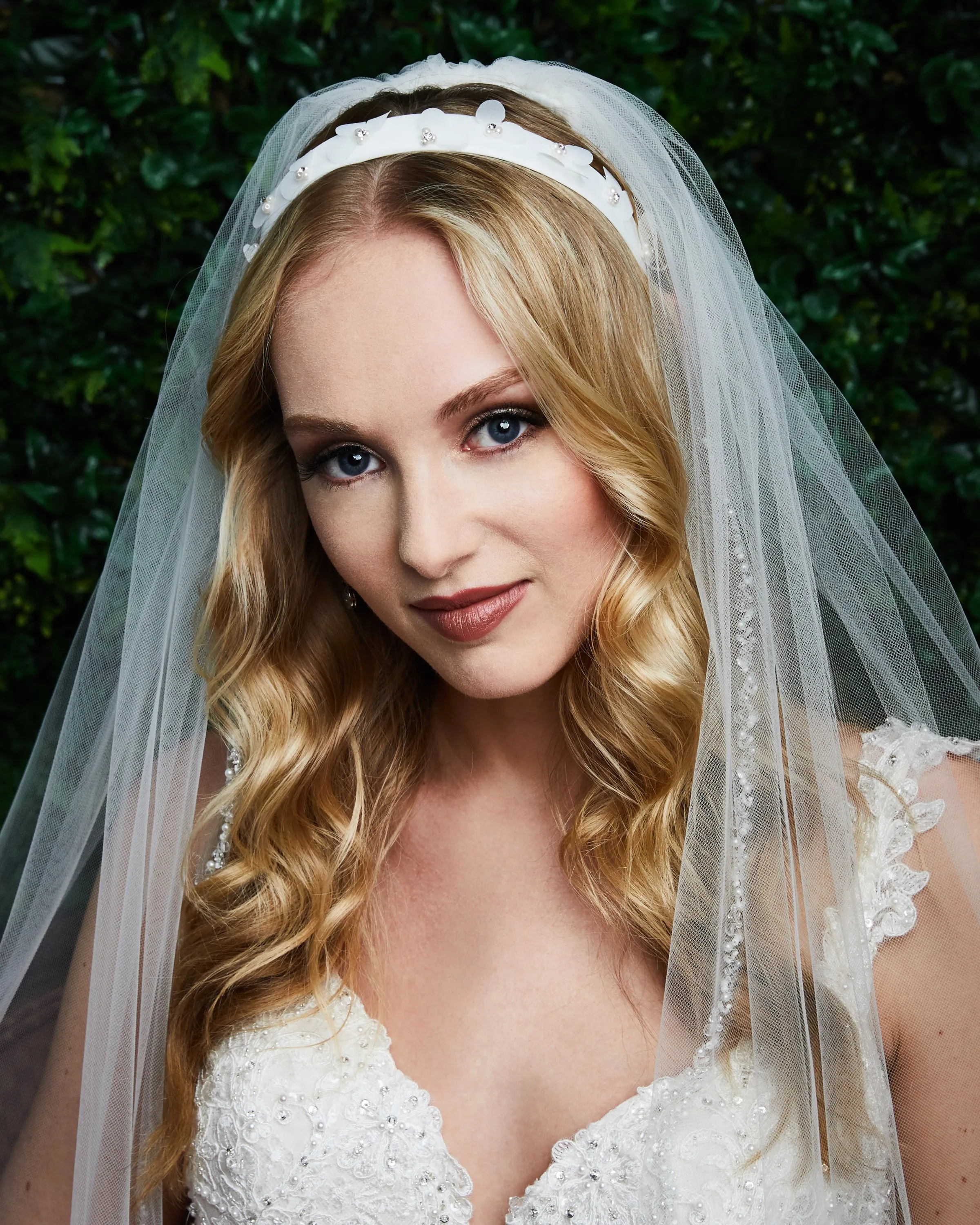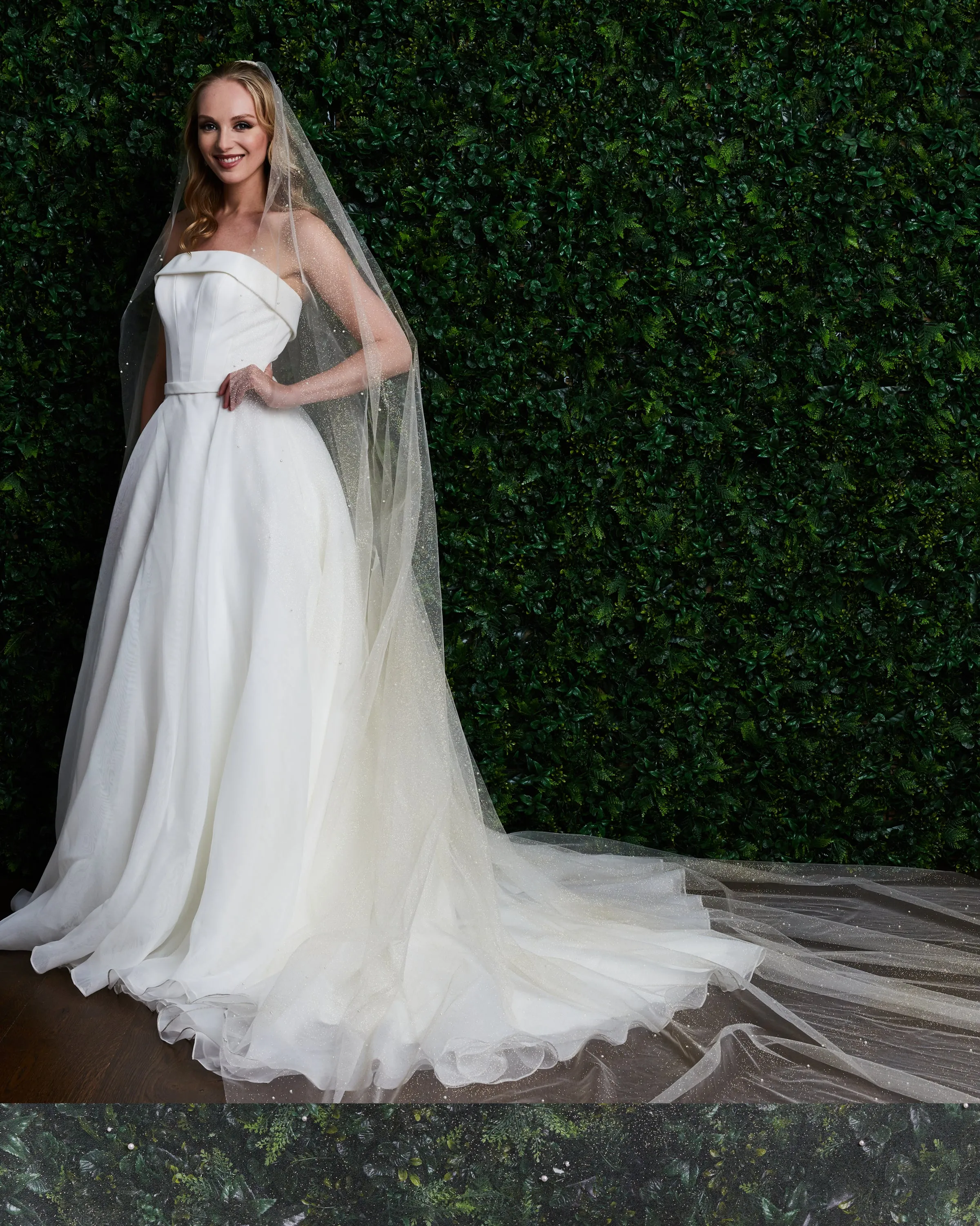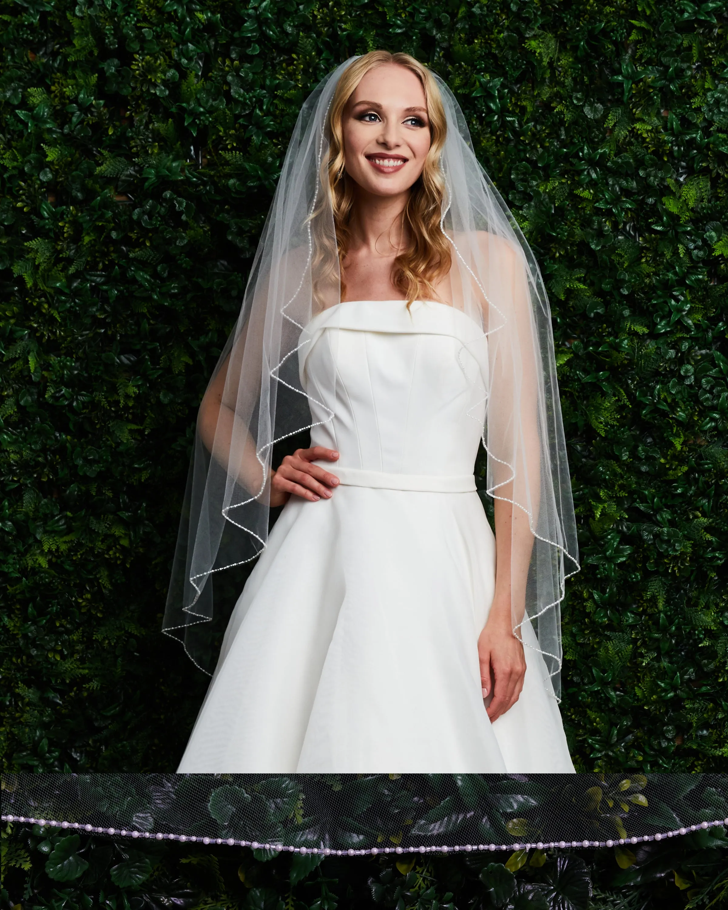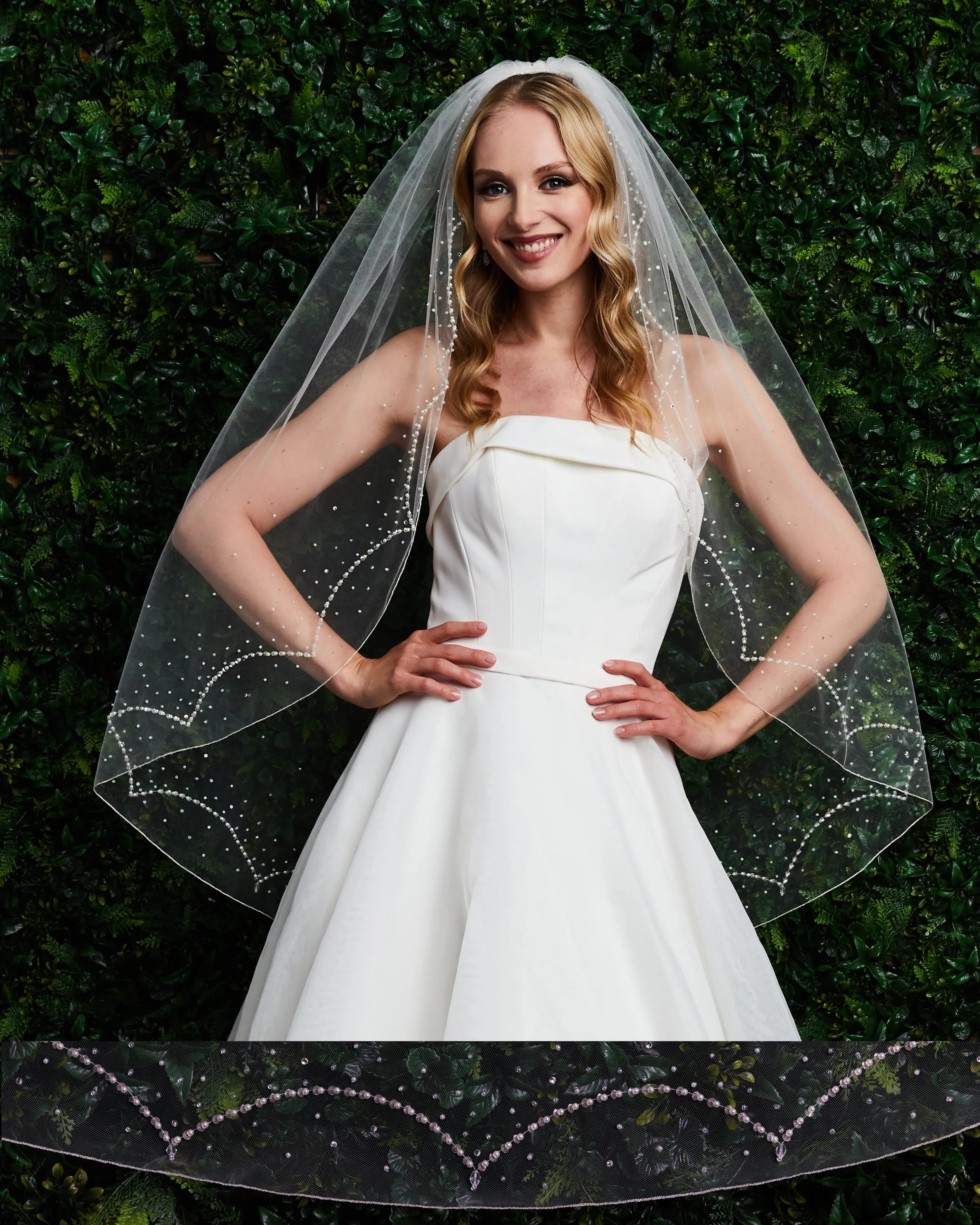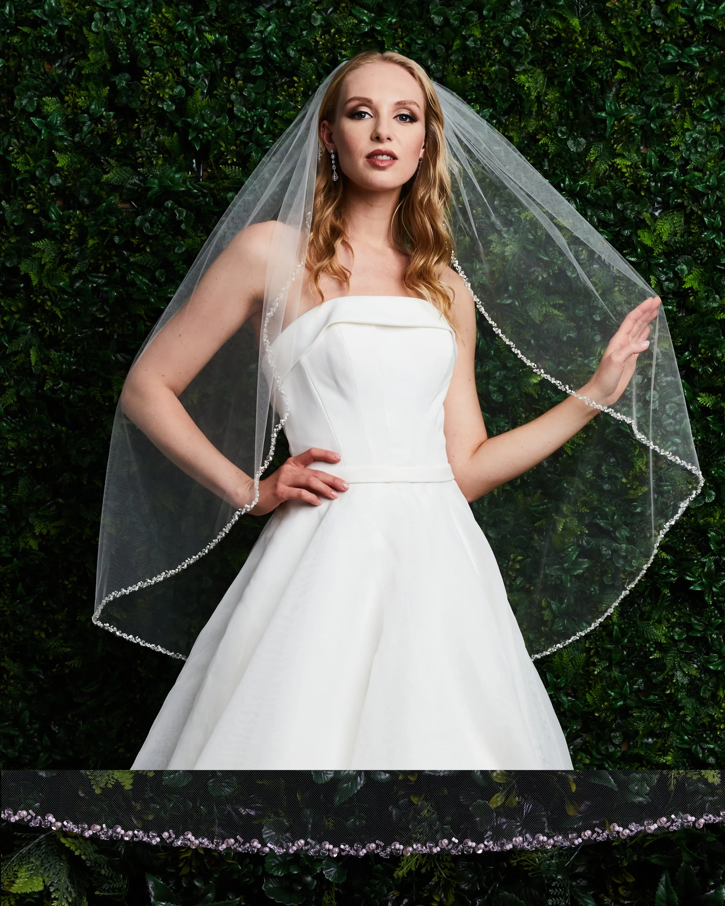 Glitter veil with crystal beaded edge. Also available in fingertip