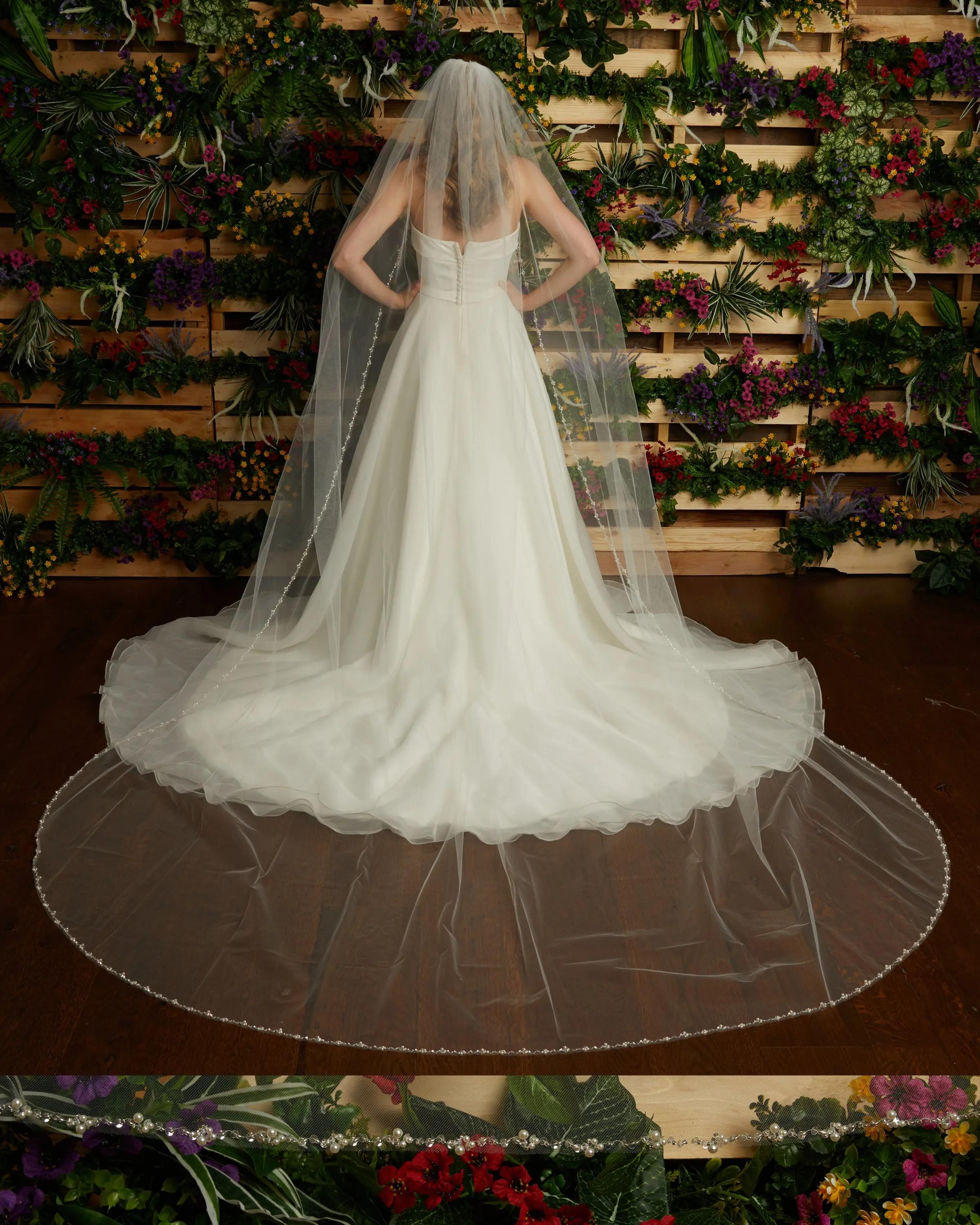 Marionat veils are crafted using the highest quality tulle, chosen for its delicate drape and lightweight feel. We hold our materials to the highest standards, sourcing fine laces and embellishments that elevate each design. Every veil is thoughtfully hand beaded, hand painted, and carefully sewn with love, resulting in timeless pieces that feel as special as the moment they’re worn.