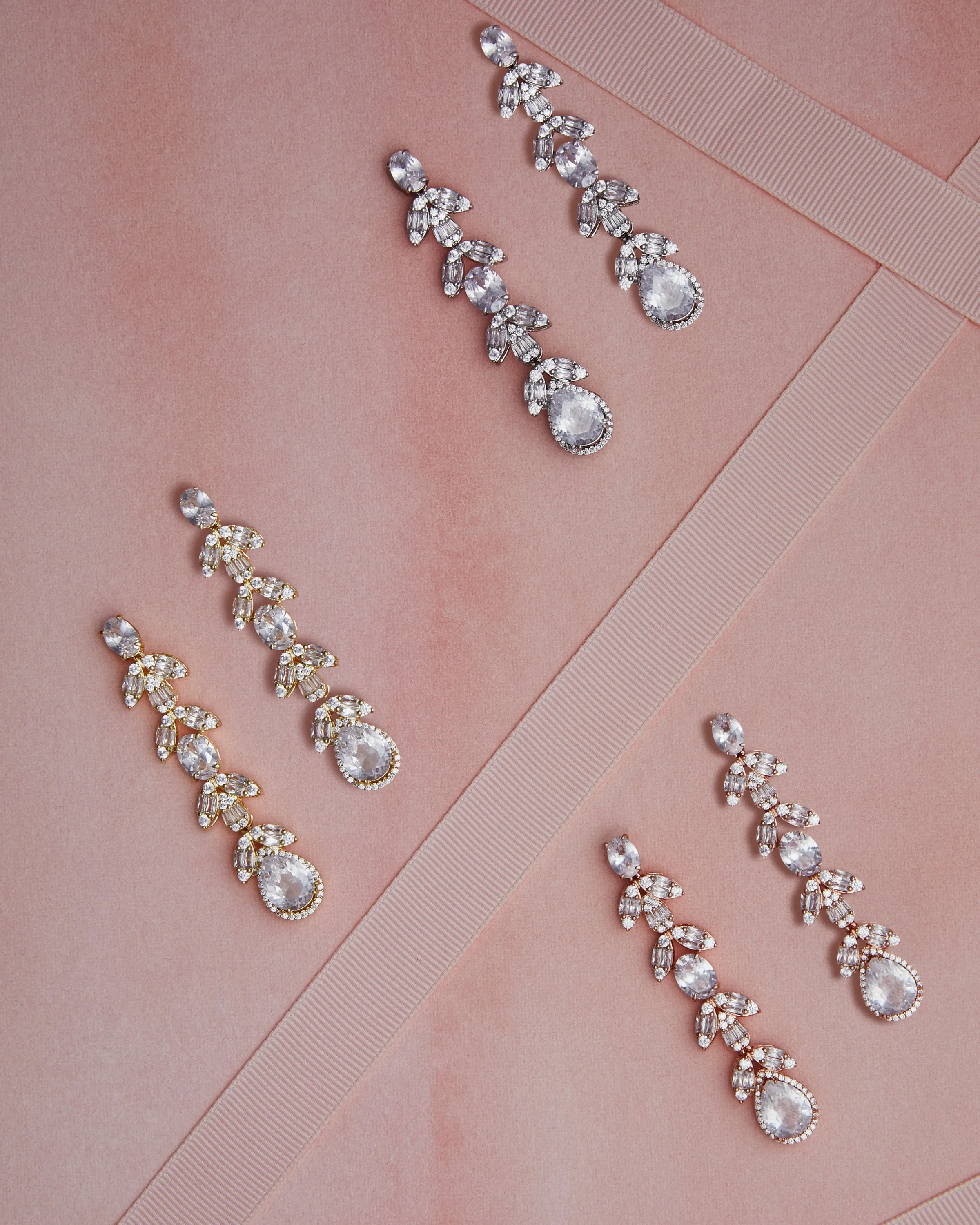 Rhinestone hanging earrings in silver, rose gold or gold
