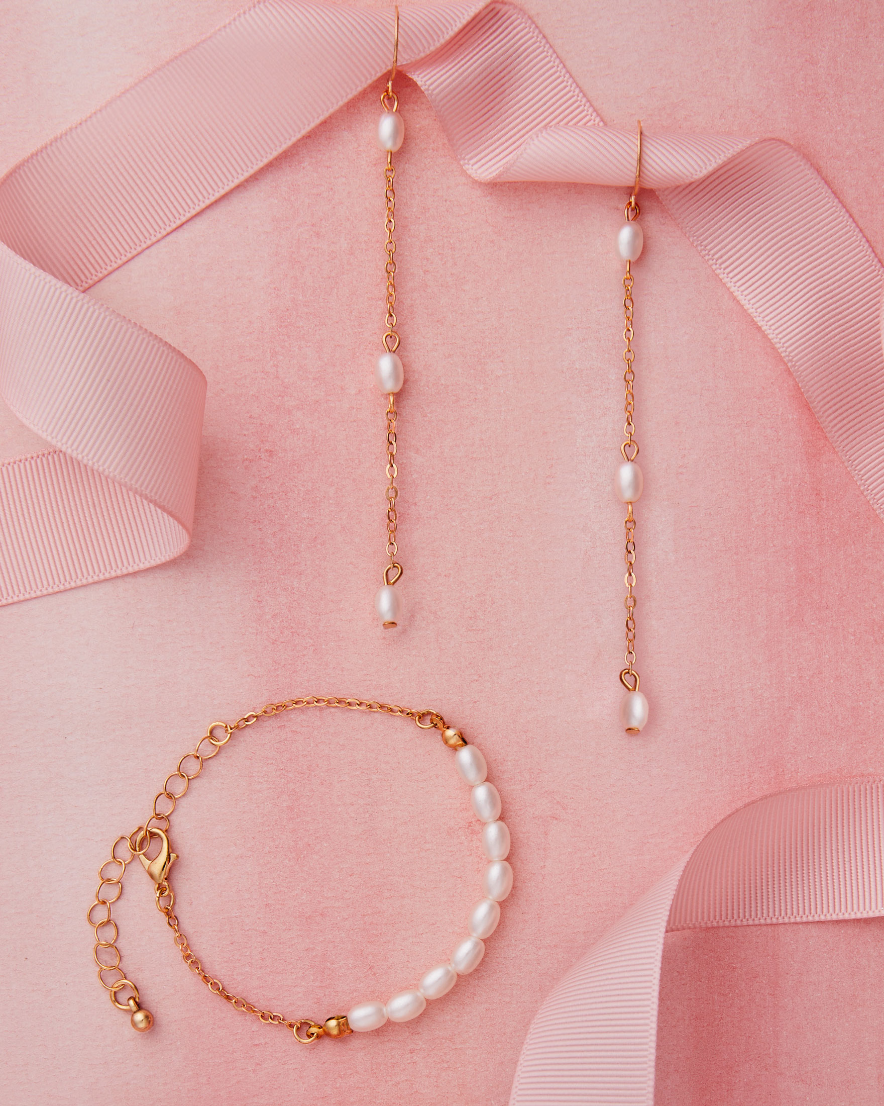 Gold pearl bracelet with earrings