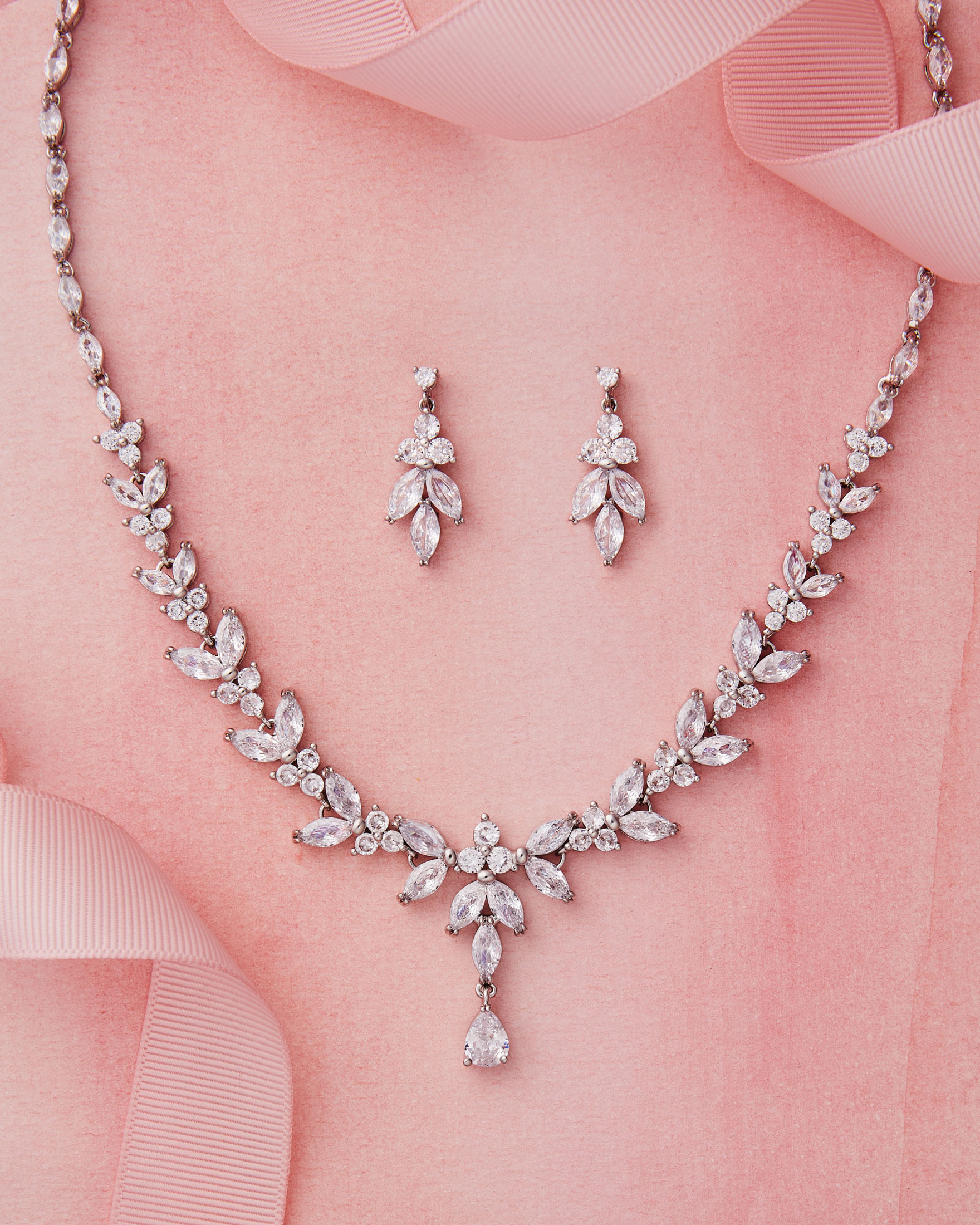 Our jewelry collection is thoughtfully designed using rhinestones, pearls, porcelain flowers, and other elegant components. Each piece is crafted to coordinate seamlessly with veils, headpieces and gowns making it the perfect finishing touch.