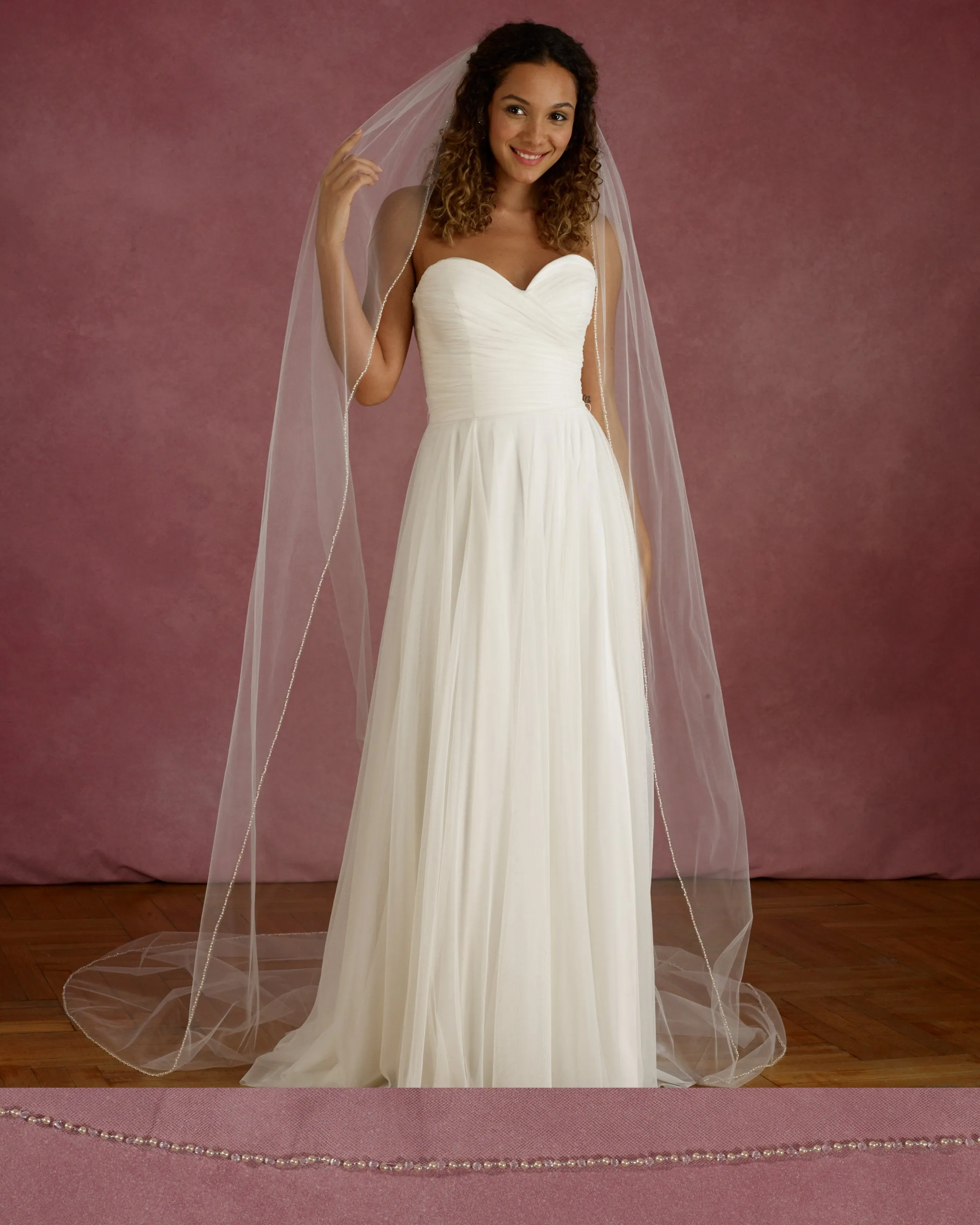 Marionat veils are crafted using the highest quality tulle, chosen for its delicate drape and lightweight feel. We hold our materials to the highest standards, sourcing fine laces and embellishments that elevate each design. Every veil is thoughtfully hand beaded, hand painted, and carefully sewn with love, resulting in timeless pieces that feel as special as the moment they’re worn.