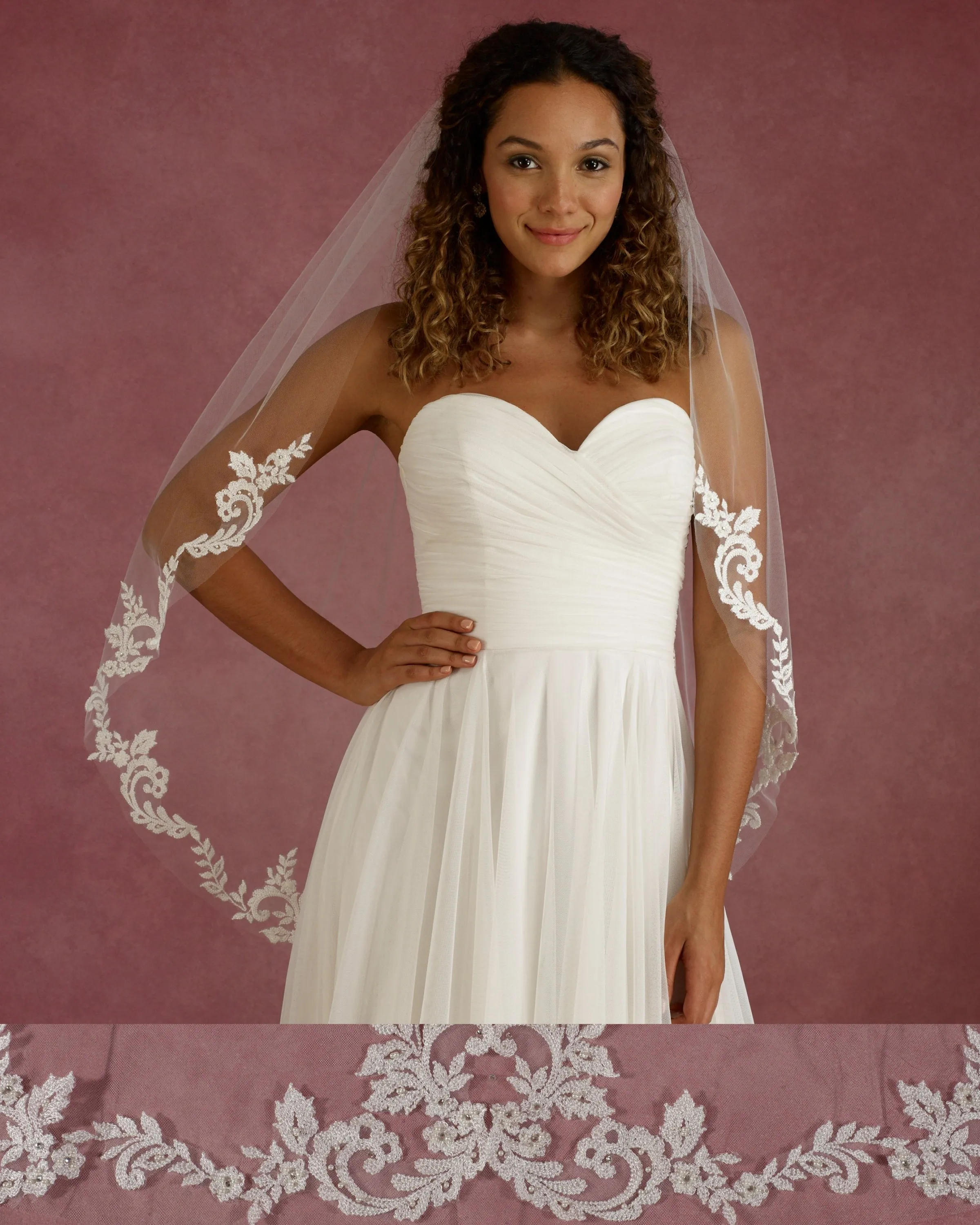 lace veil with pearls and rhinestones, lace starts 18” down
