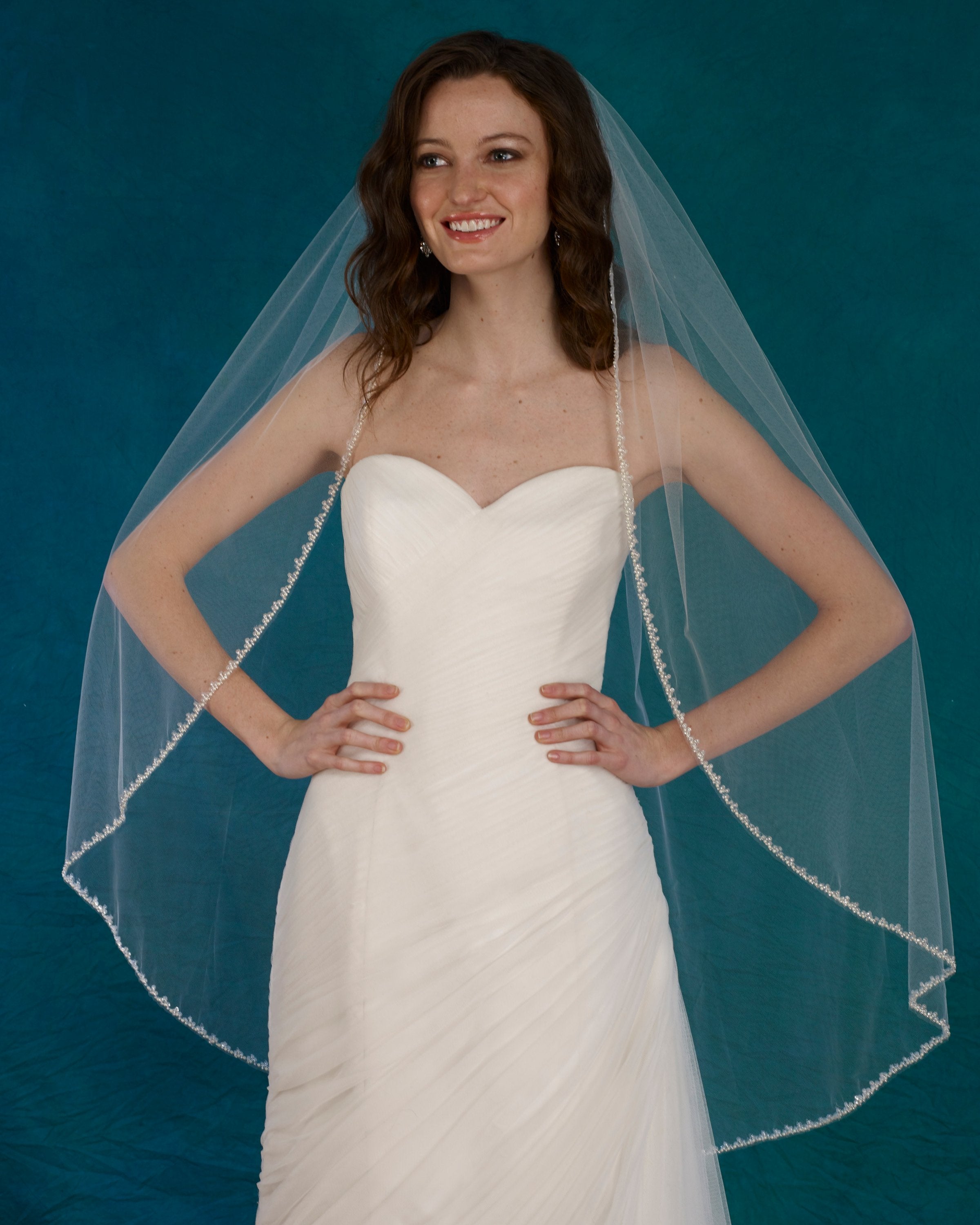 Scalloped lace veil. Lace starts 42” down