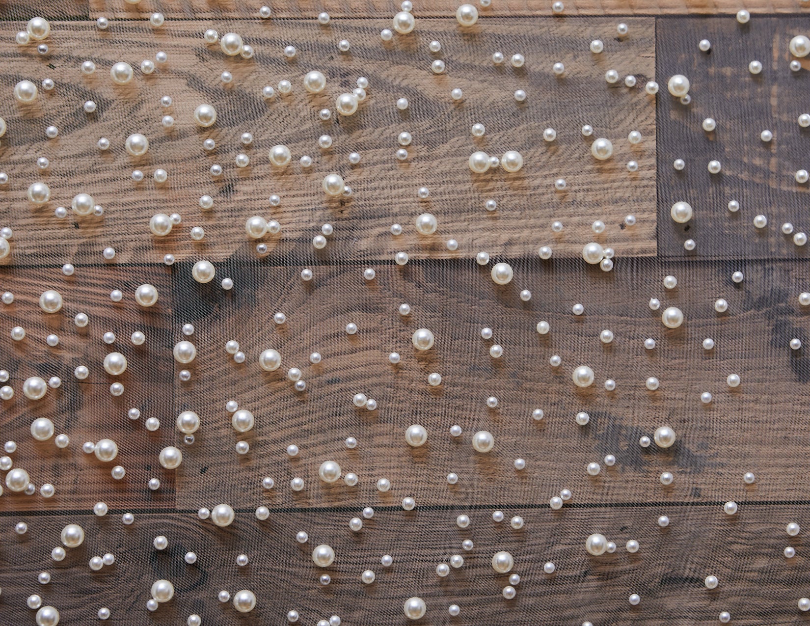 Long heavily scattered rhinestone and pearl veil on silky tulle