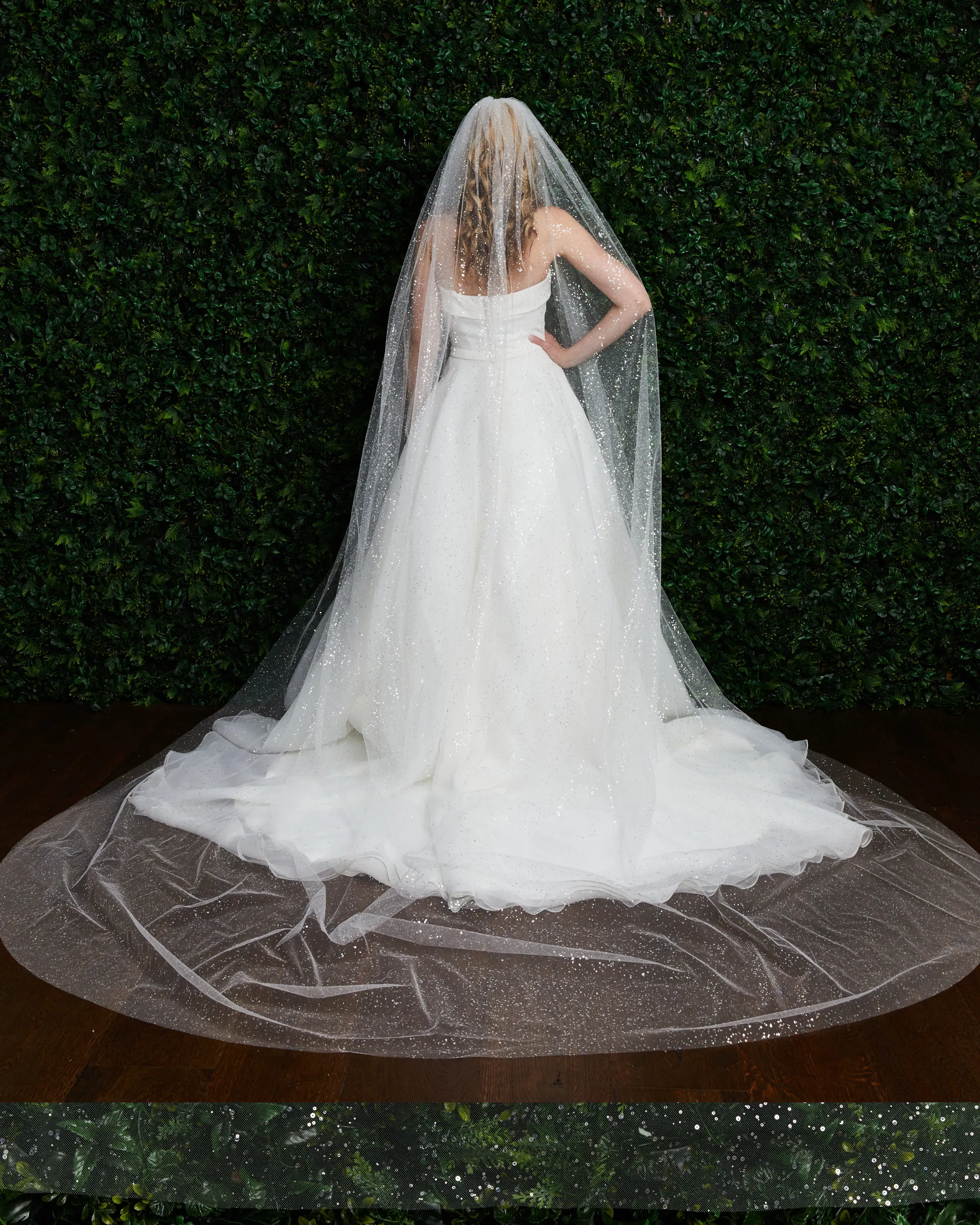 All over sequin glitter dew drop veil. Ivory only tapered