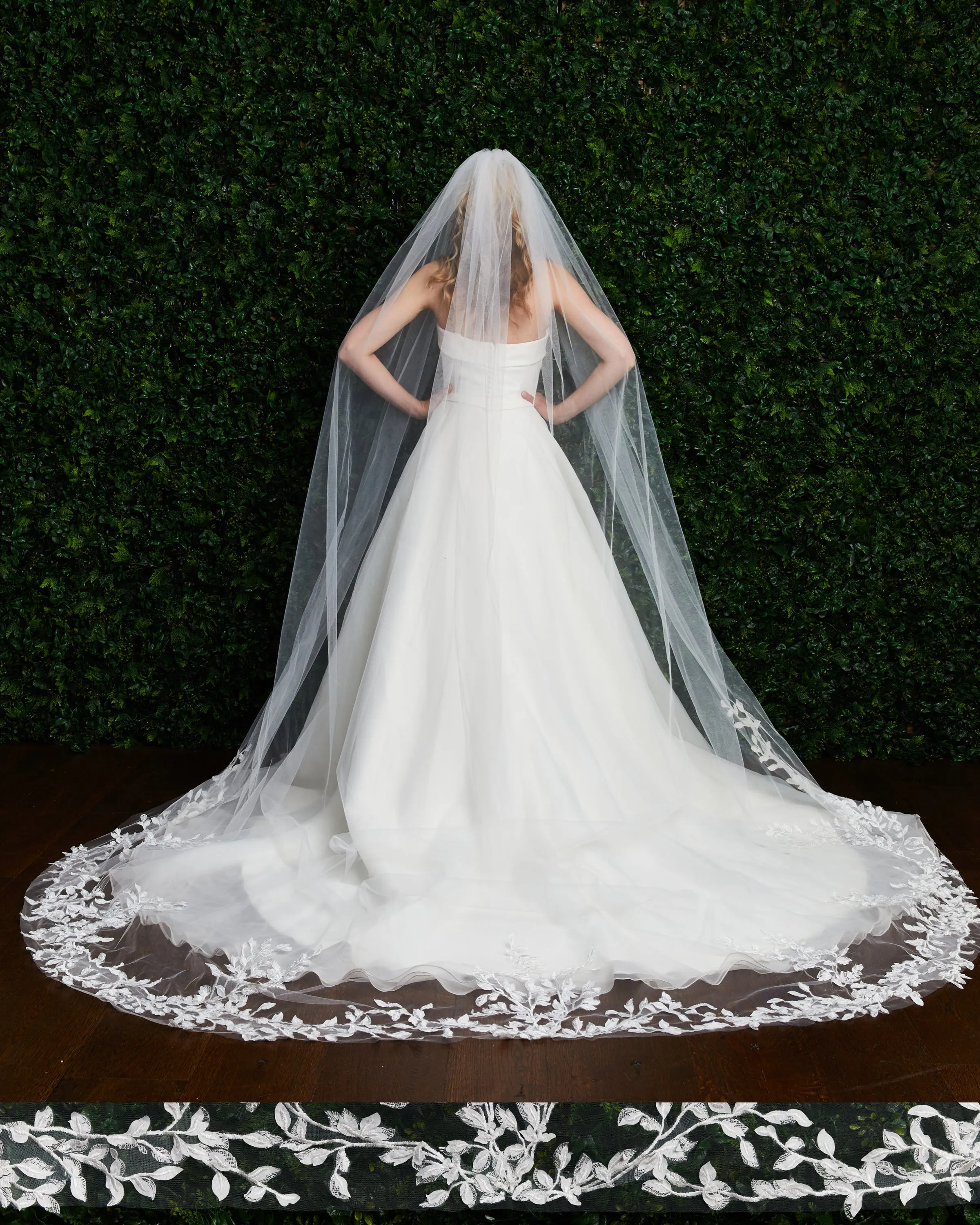 Leaf lace veil. Lace starts 60” down, no beading