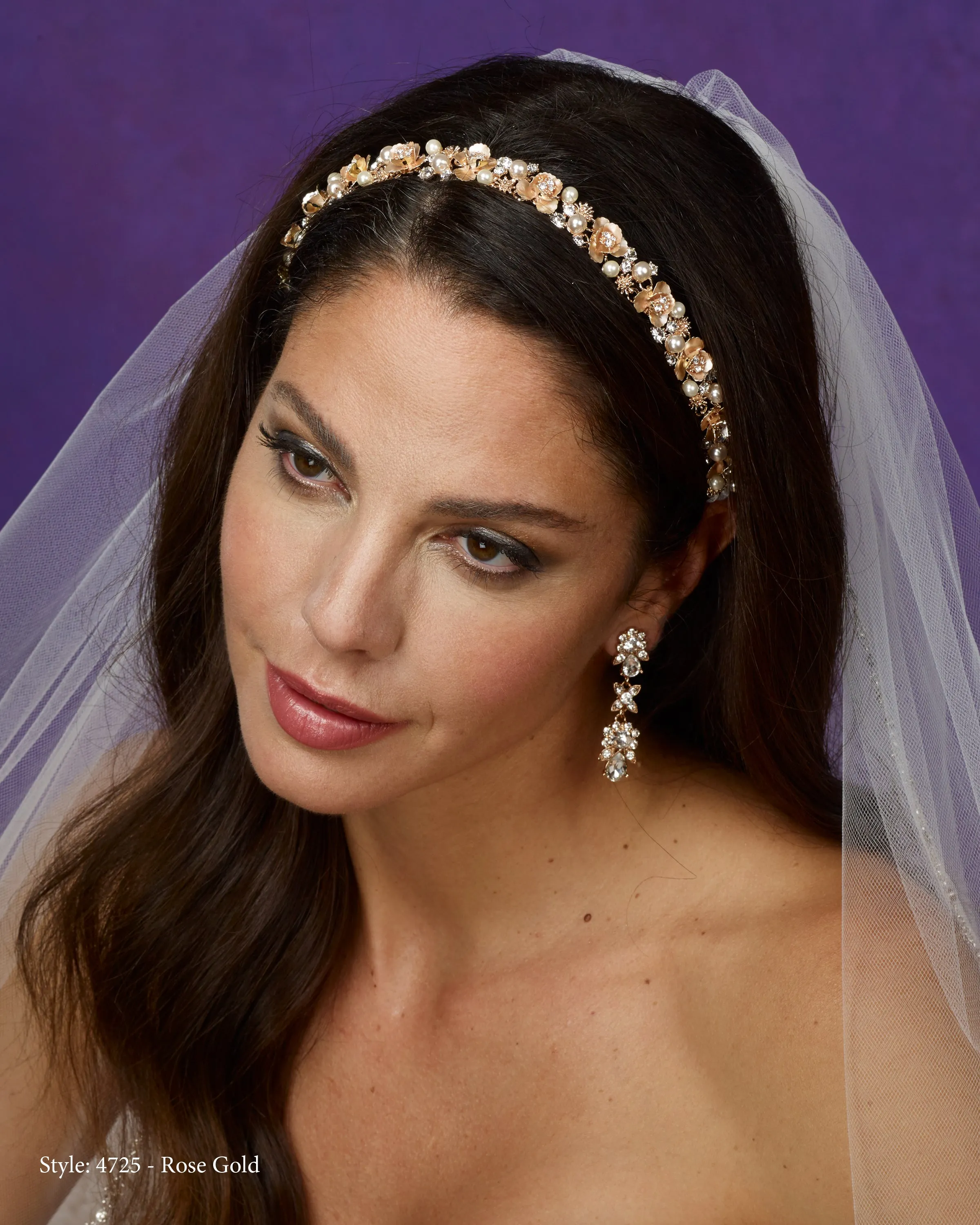 Handcrafted using rhinestones, pearls, beads, cast metal components, crystals, and other fine finishes, our headpieces are designed to bring timeless beauty and refined sparkle to a bride’s look. Each piece is silver or gold plated to ensure longevity, durability, and lasting quality.