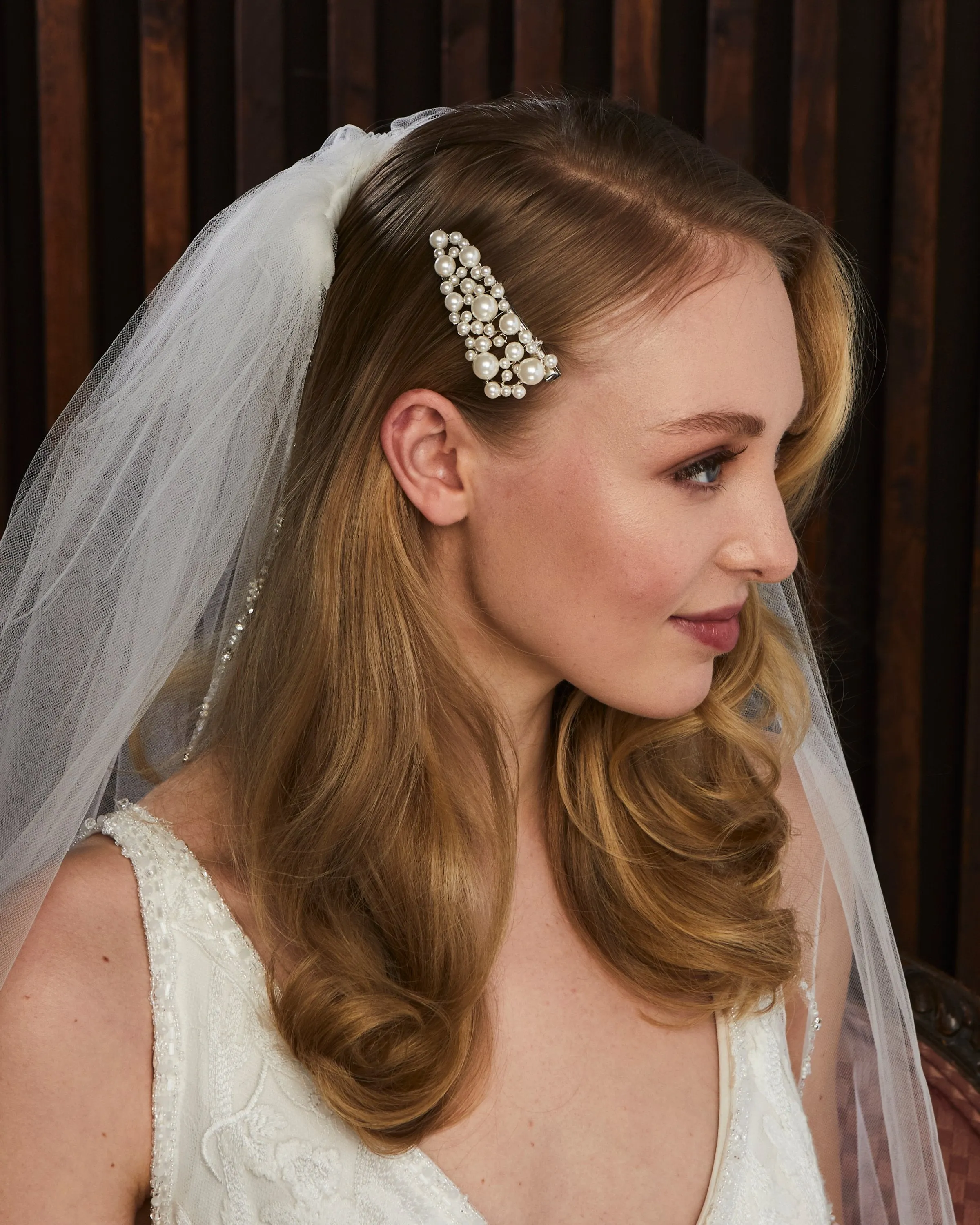 Handcrafted using rhinestones, pearls, beads, cast metal components, crystals, and other fine finishes, our headpieces are designed to bring timeless beauty and refined sparkle to a bride’s look. Each piece is silver or gold plated to ensure longevity, durability, and lasting quality.