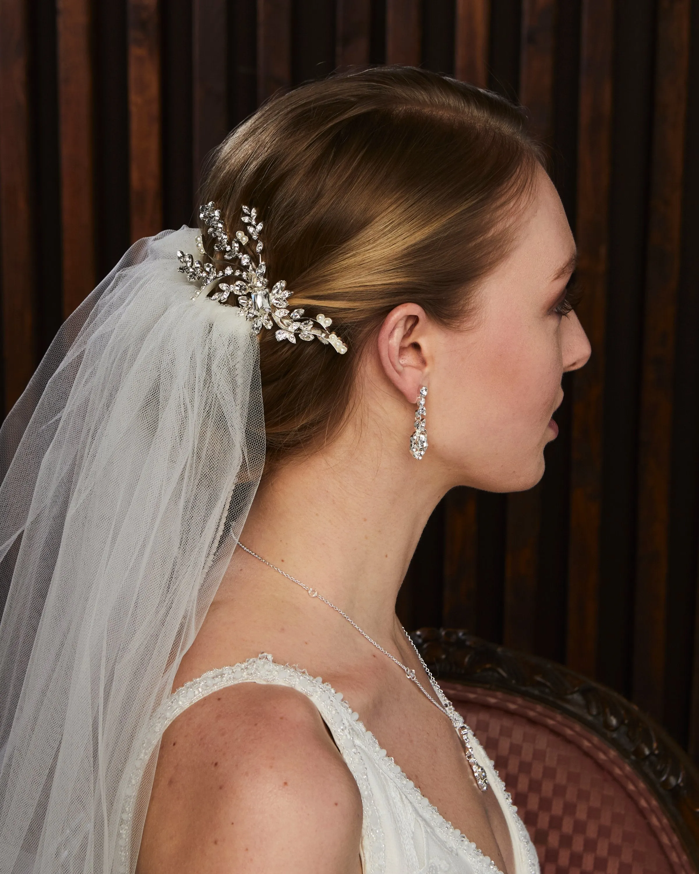 Handcrafted using rhinestones, pearls, beads, cast metal components, crystals, and other fine finishes, our headpieces are designed to bring timeless beauty and refined sparkle to a bride’s look. Each piece is silver or gold plated to ensure longevity, durability, and lasting quality.