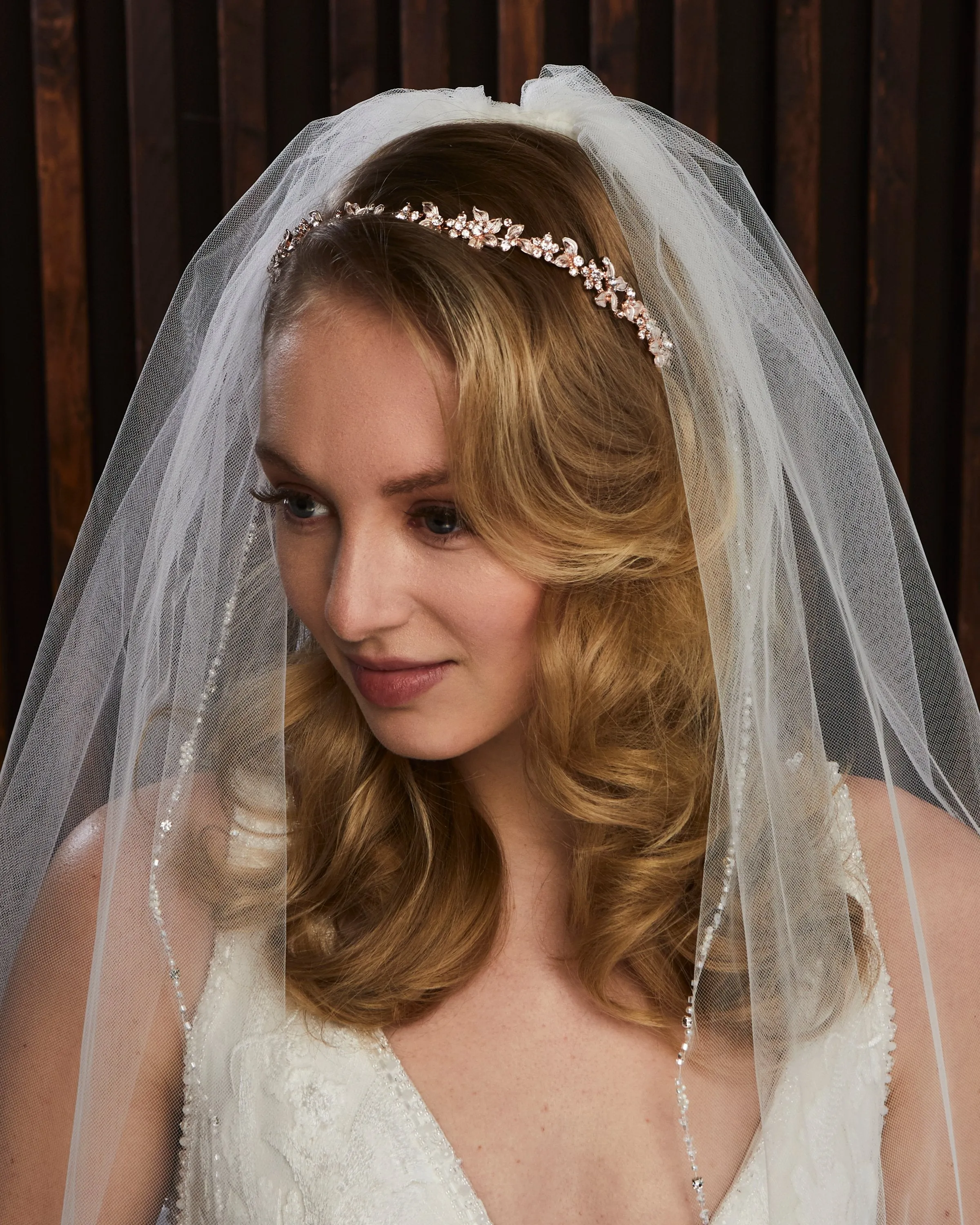 Handcrafted using rhinestones, pearls, beads, cast metal components, crystals, and other fine finishes, our headpieces are designed to bring timeless beauty and refined sparkle to a bride’s look. Each piece is silver or gold plated to ensure longevity, durability, and lasting quality.