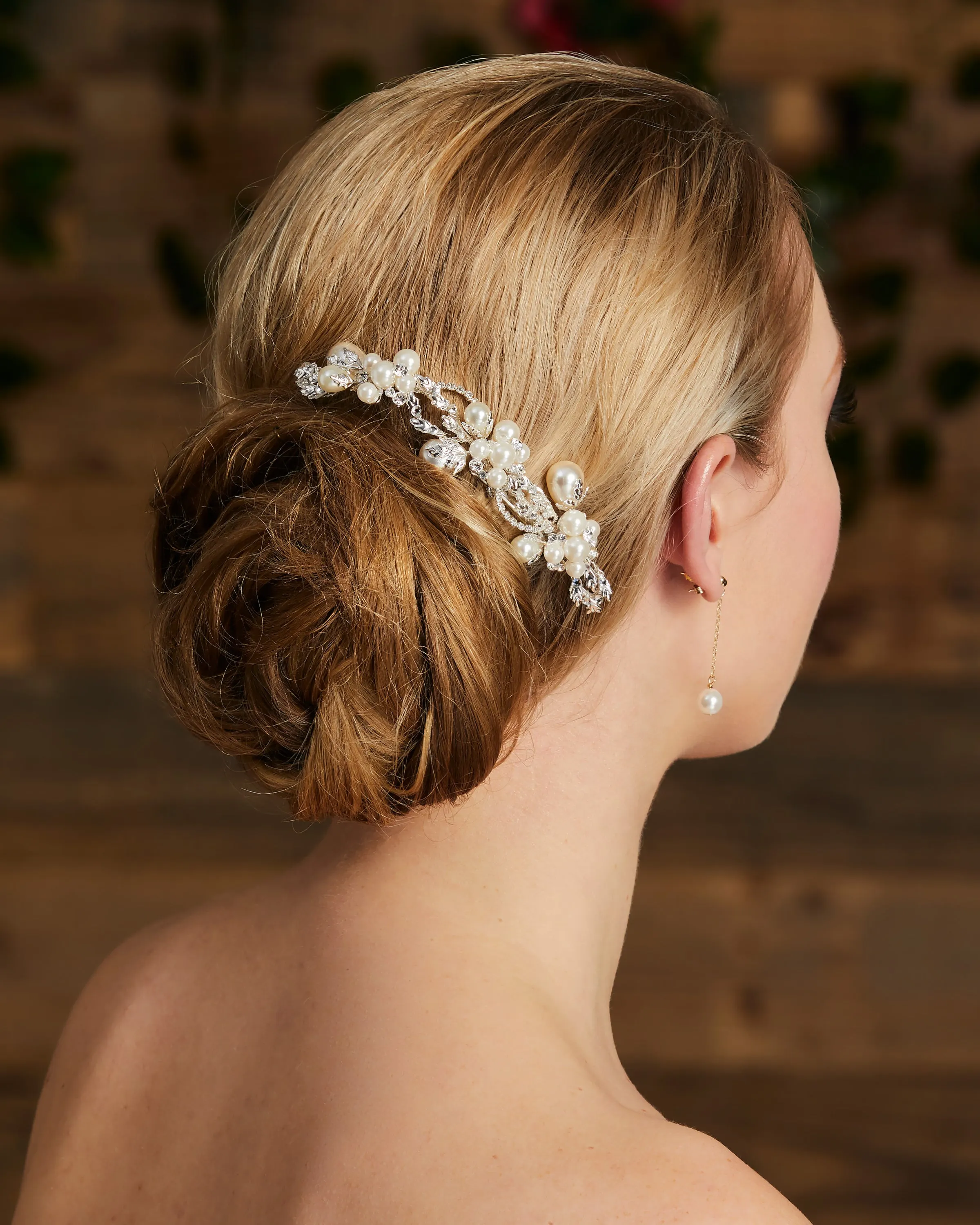Handcrafted using rhinestones, pearls, beads, cast metal components, crystals, and other fine finishes, our headpieces are designed to bring timeless beauty and refined sparkle to a bride’s look. Each piece is silver or gold plated to ensure longevity, durability, and lasting quality.