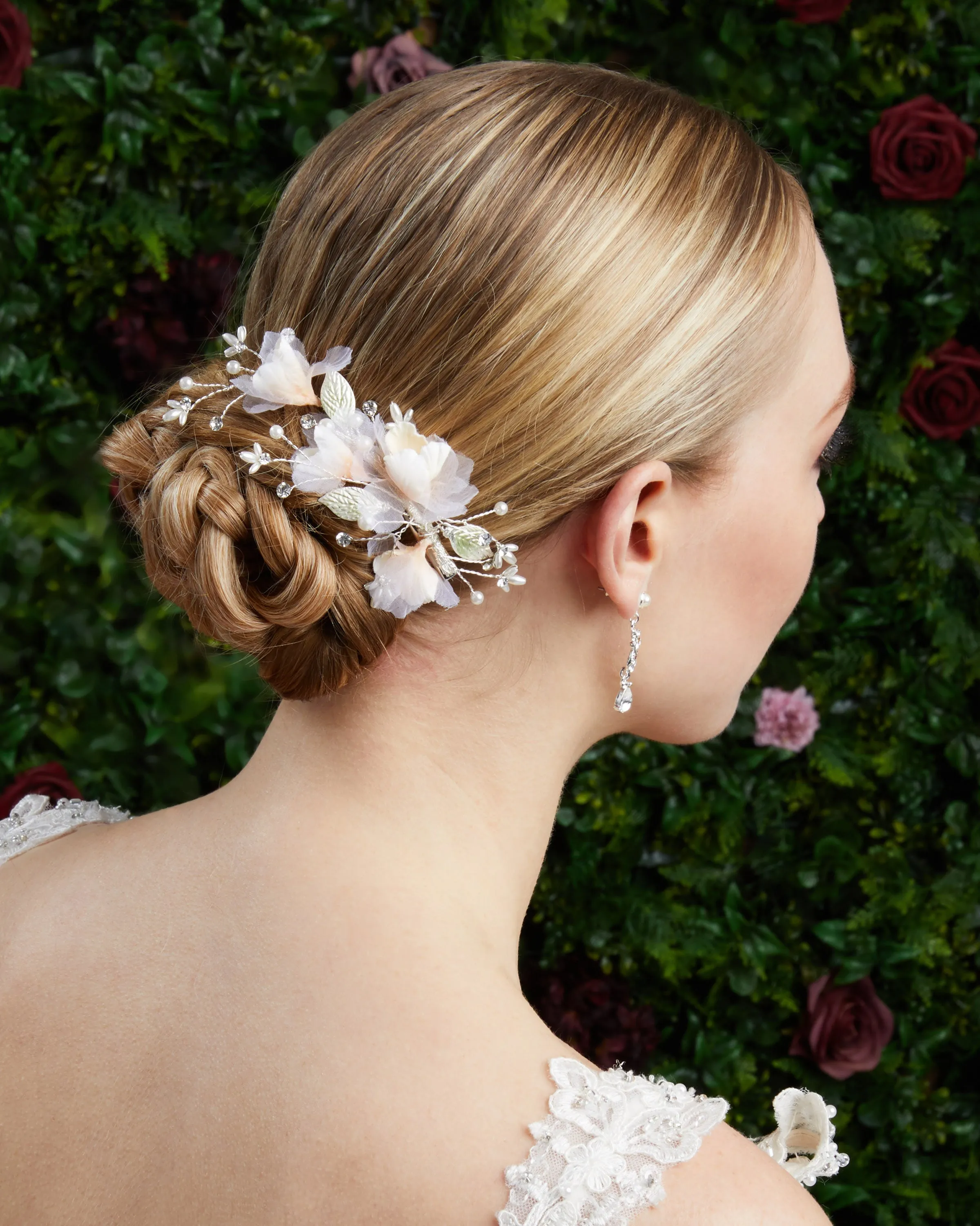 Handcrafted using rhinestones, pearls, beads, cast metal components, crystals, and other fine finishes, our headpieces are designed to bring timeless beauty and refined sparkle to a bride’s look. Each piece is silver or gold plated to ensure longevity, durability, and lasting quality.