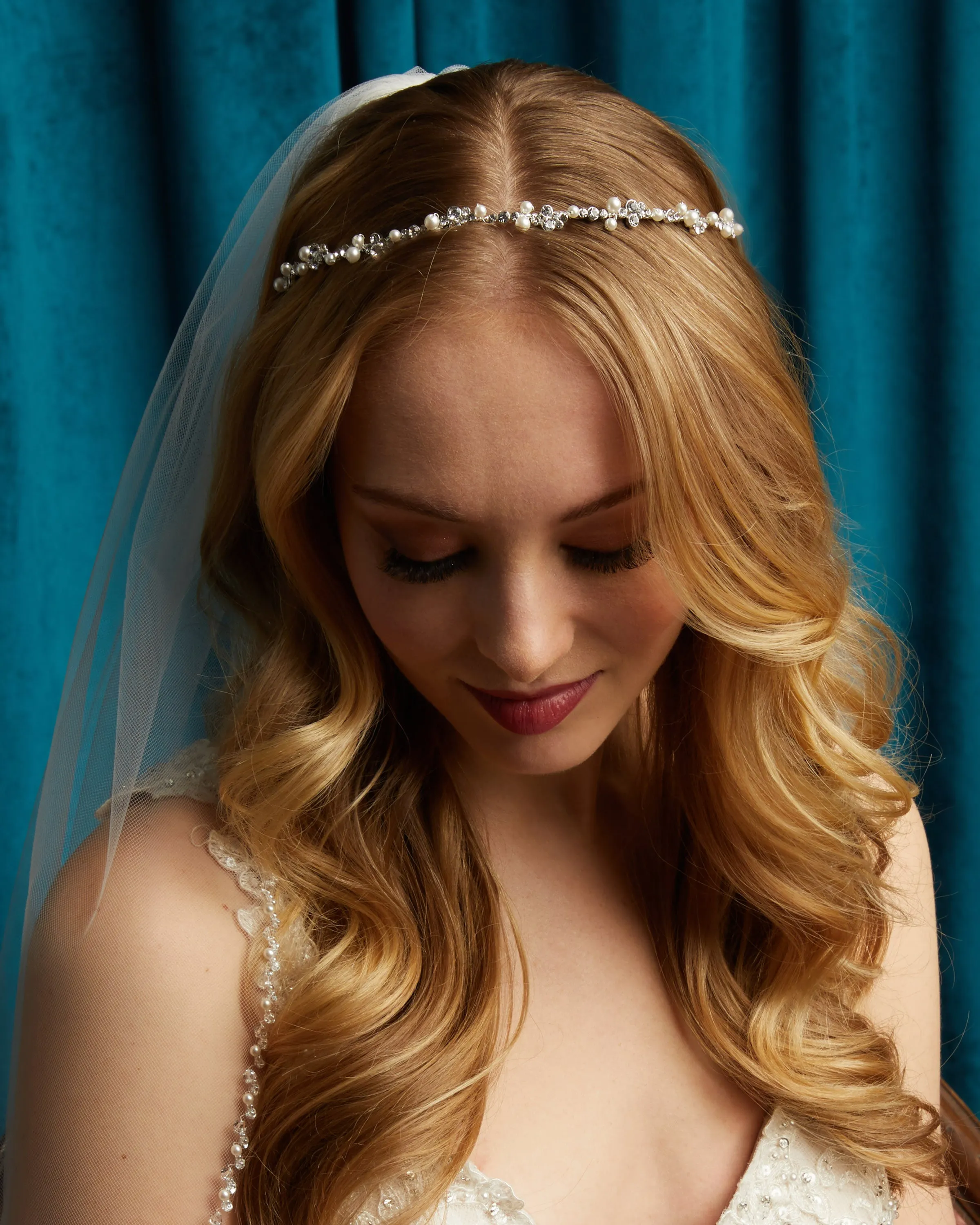 Handcrafted using rhinestones, pearls, beads, cast metal components, crystals, and other fine finishes, our headpieces are designed to bring timeless beauty and refined sparkle to a bride’s look. Each piece is silver or gold plated to ensure longevity, durability, and lasting quality.