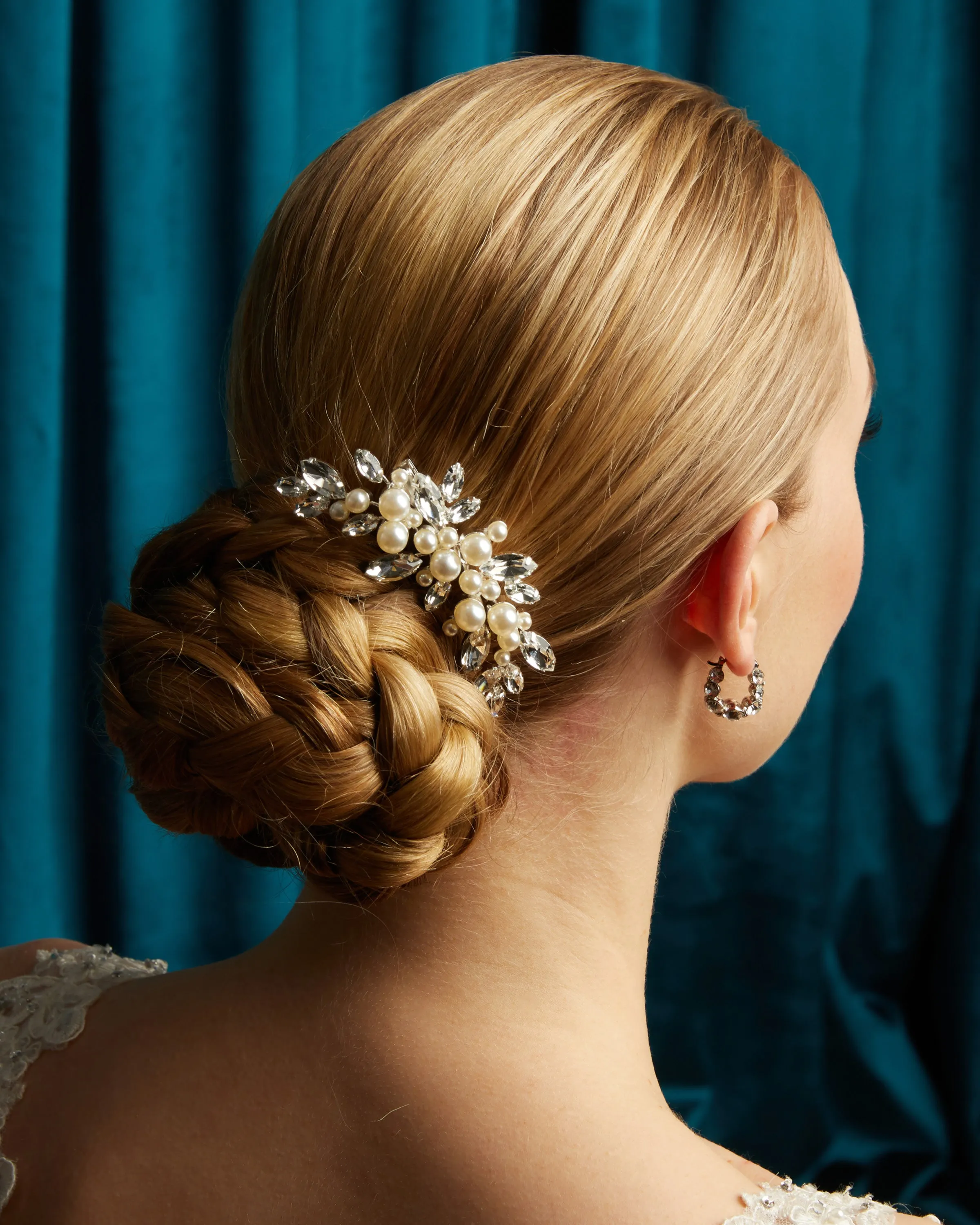 Handcrafted using rhinestones, pearls, beads, cast metal components, crystals, and other fine finishes, our headpieces are designed to bring timeless beauty and refined sparkle to a bride’s look. Each piece is silver or gold plated to ensure longevity, durability, and lasting quality.