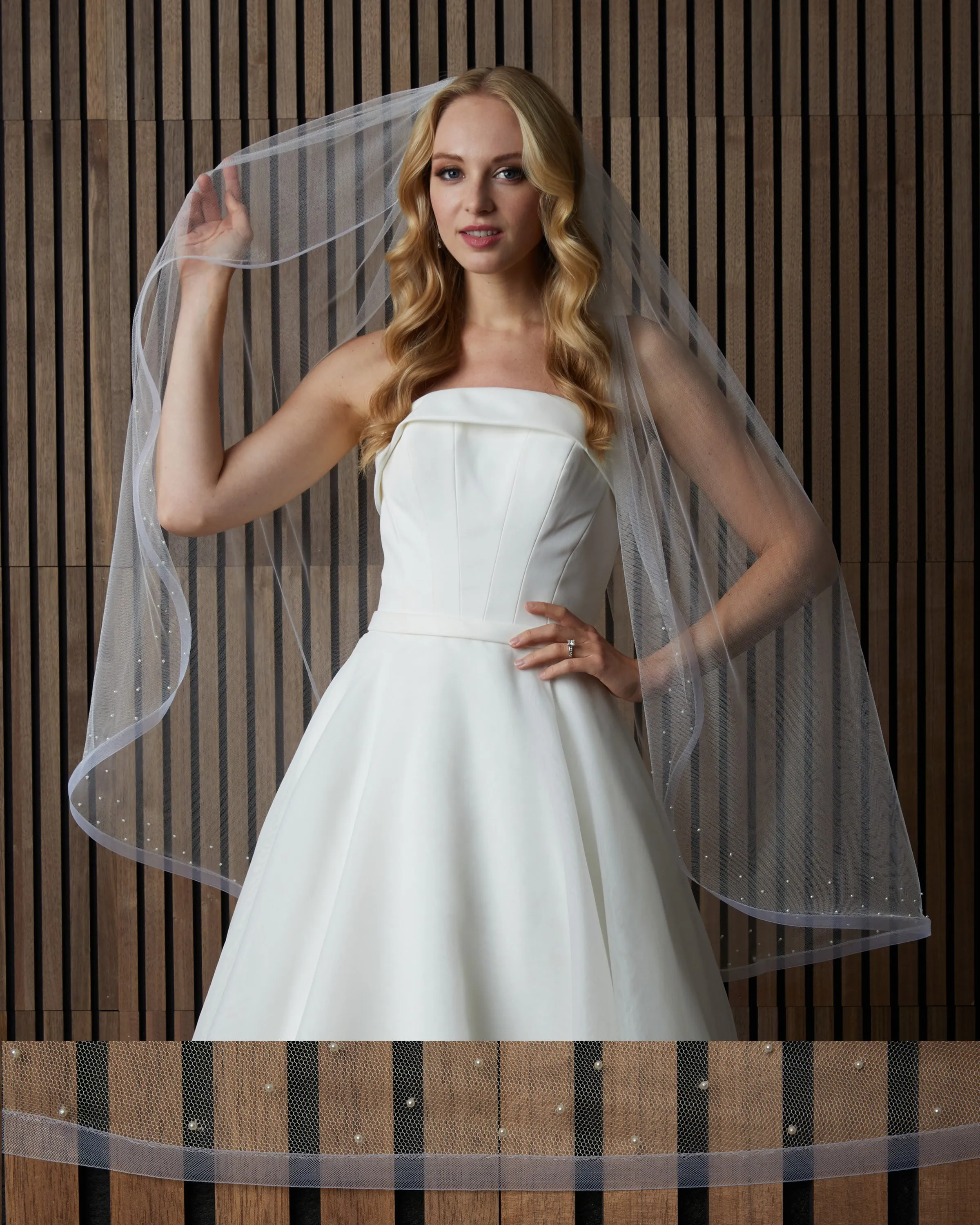 Soft luxe veil with 1/2” horsehair with pearl border