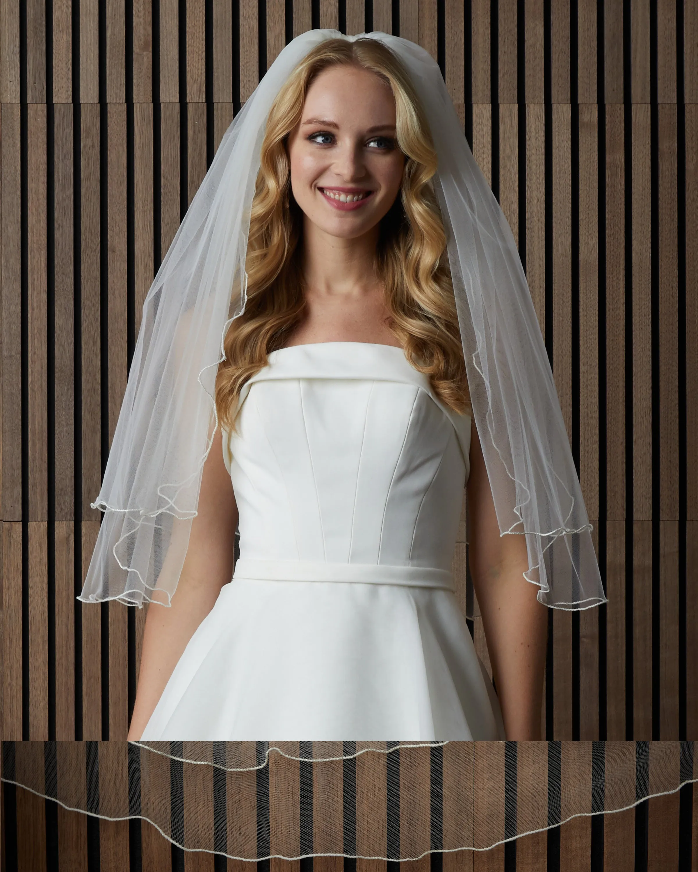 Two tier curly edge veil